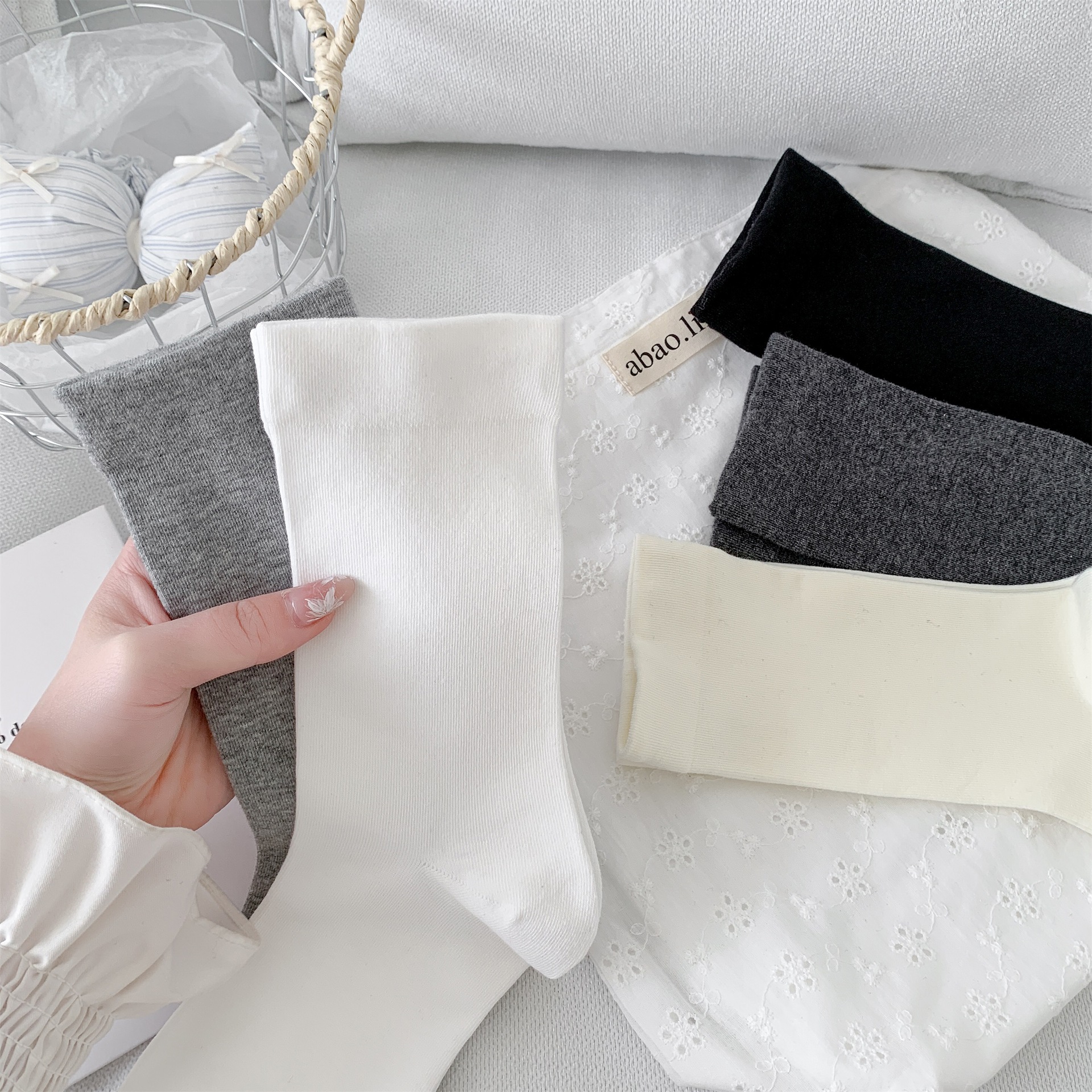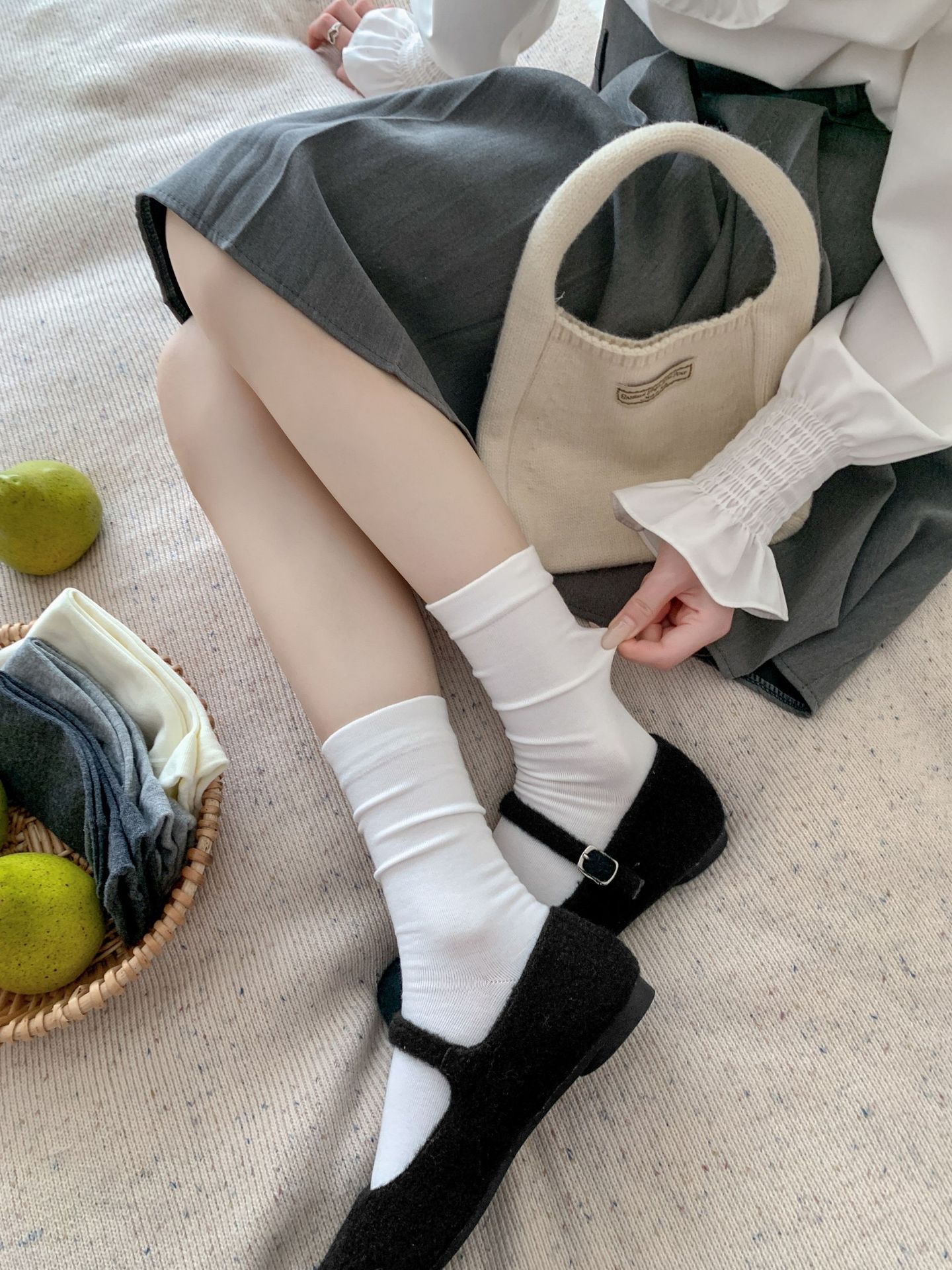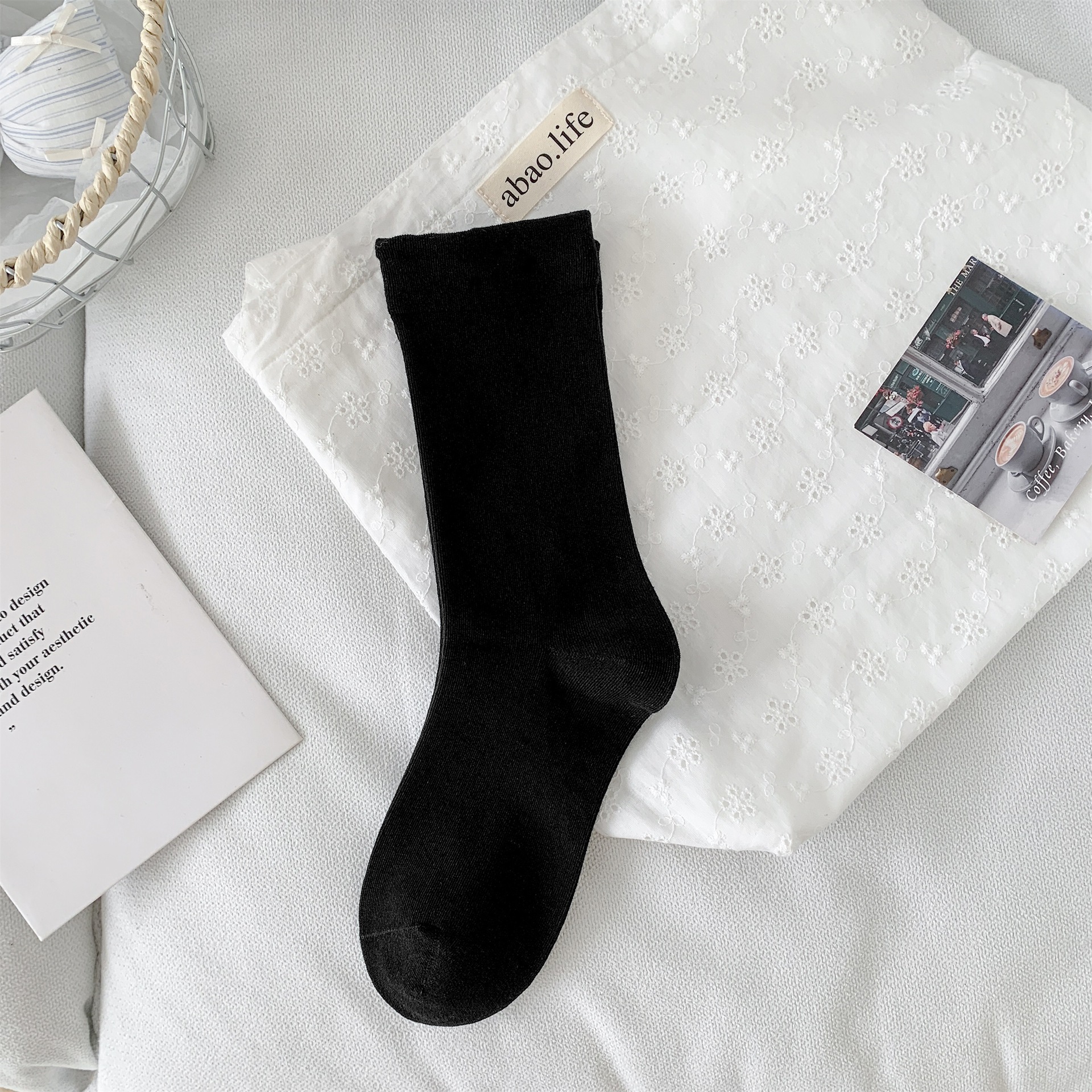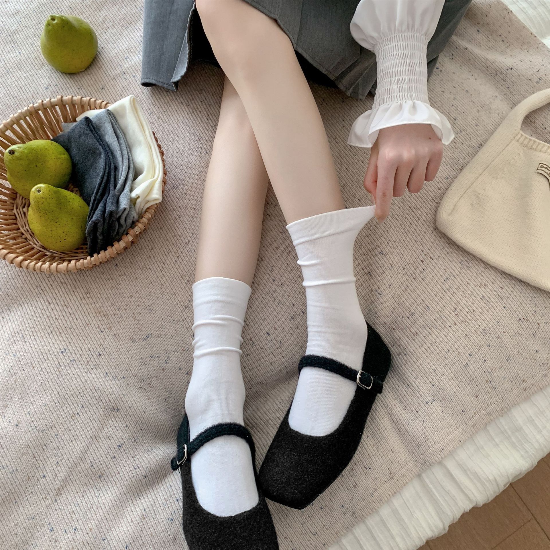 여성용 파일 양말, 흰색 종아리 양말, 작은 가죽 신발과 어울리는 봄, 가을, 검은색 양말, 얇은 가을, 겨울, 여름용 뼈없는 양말스토어 가기