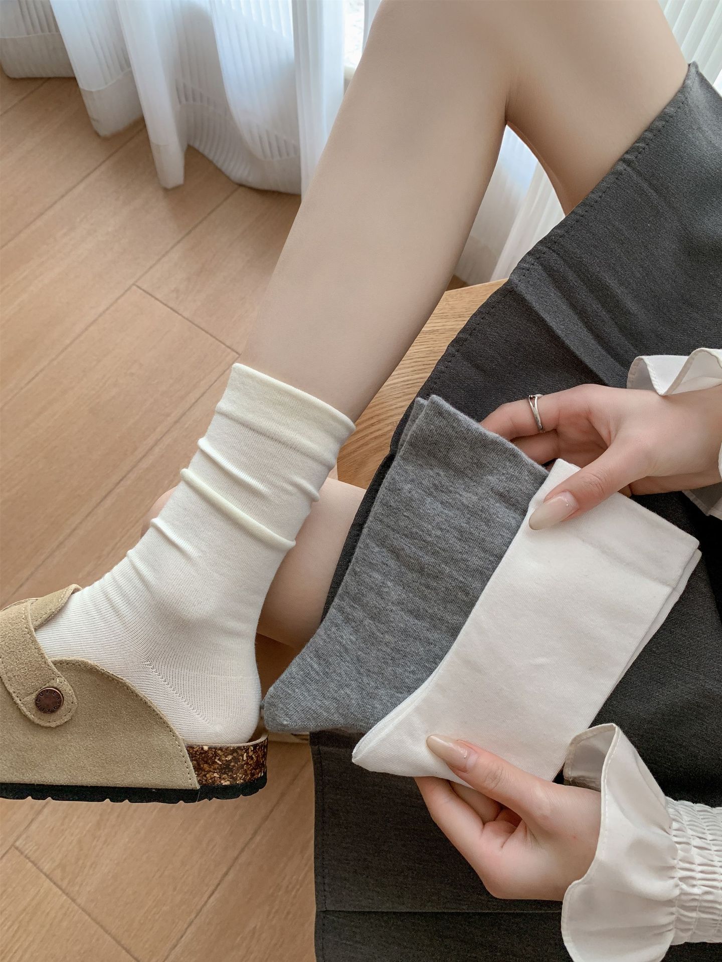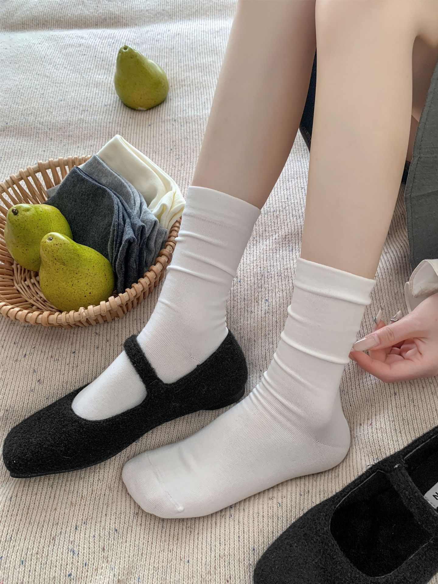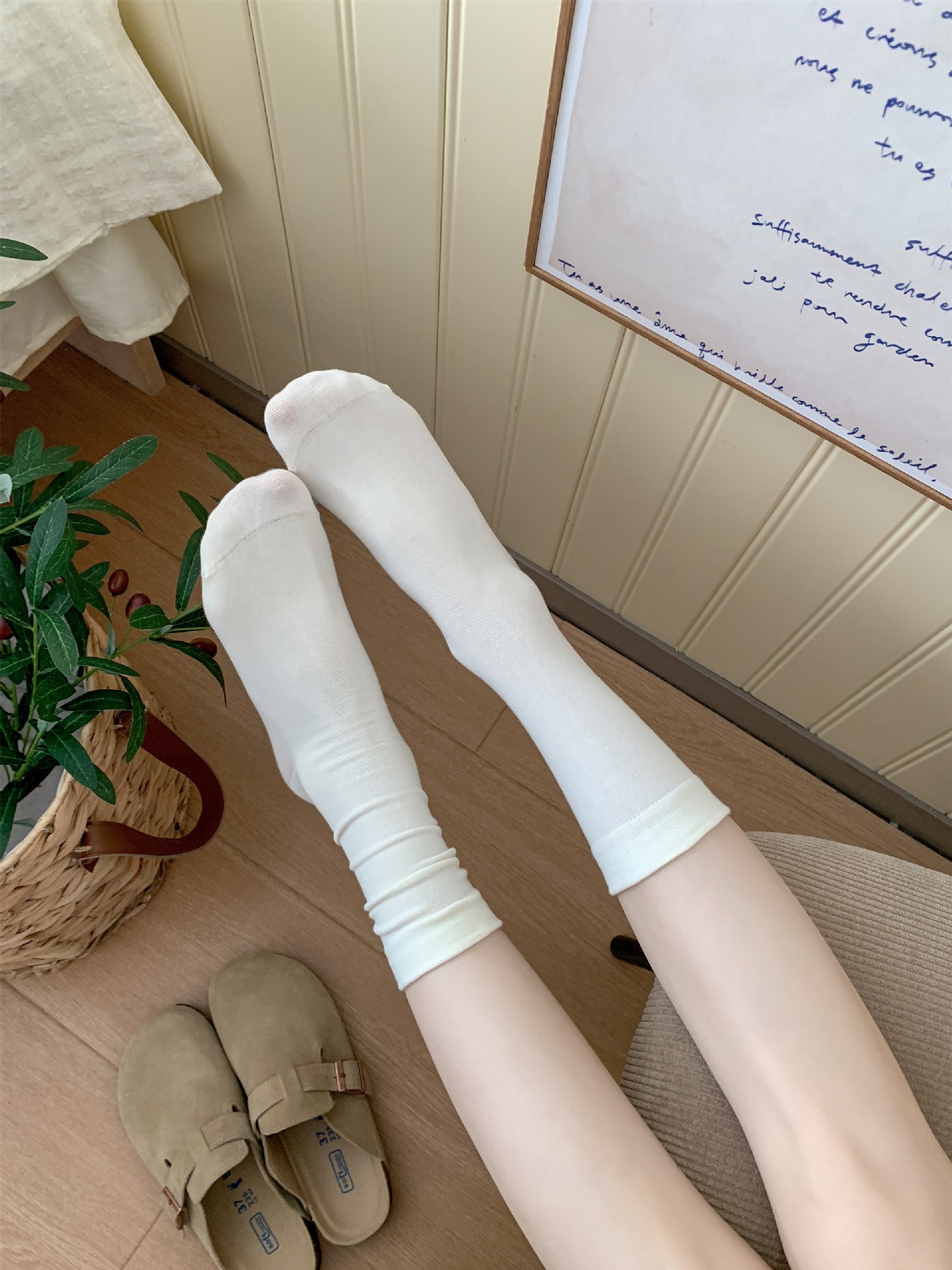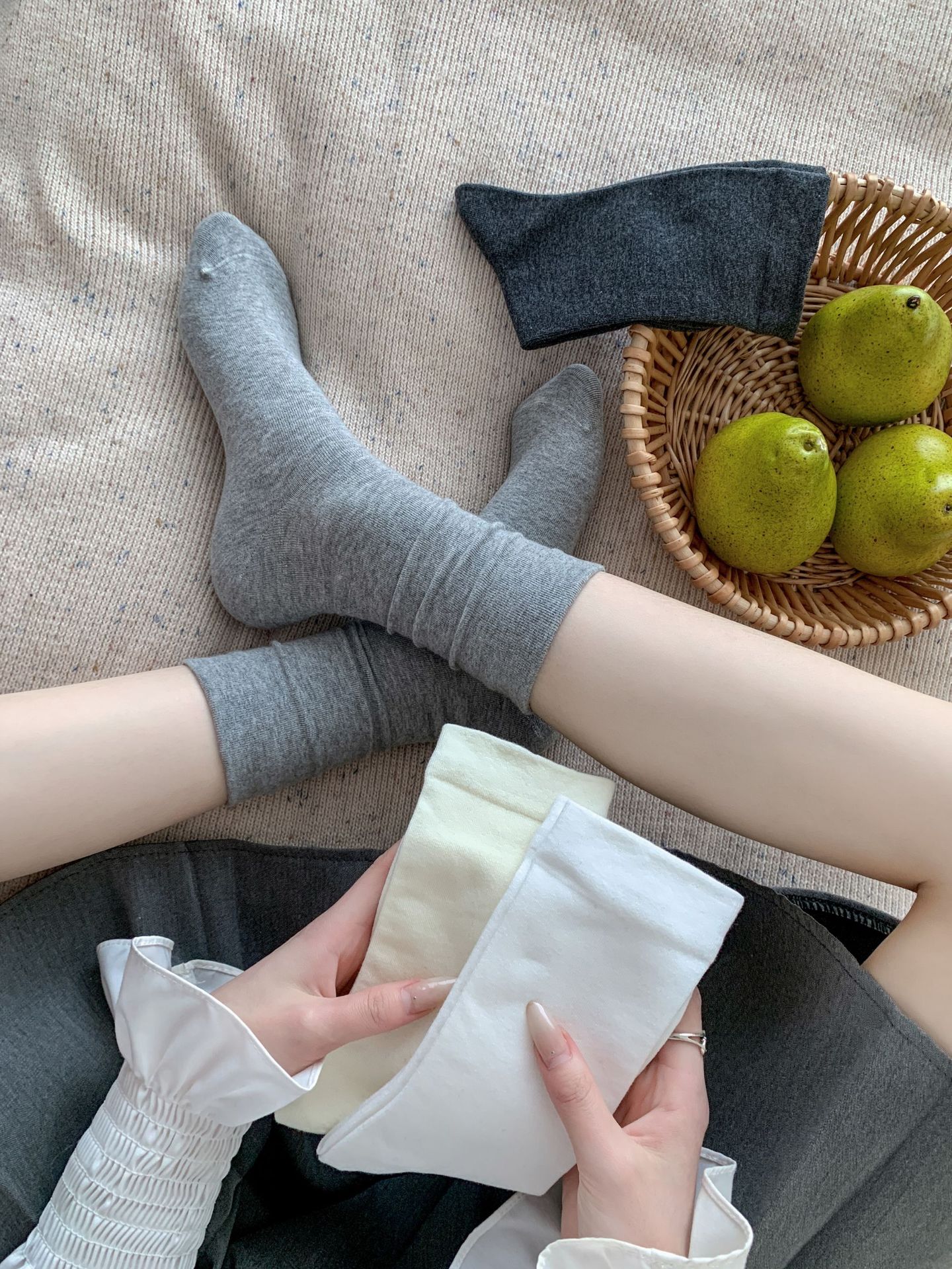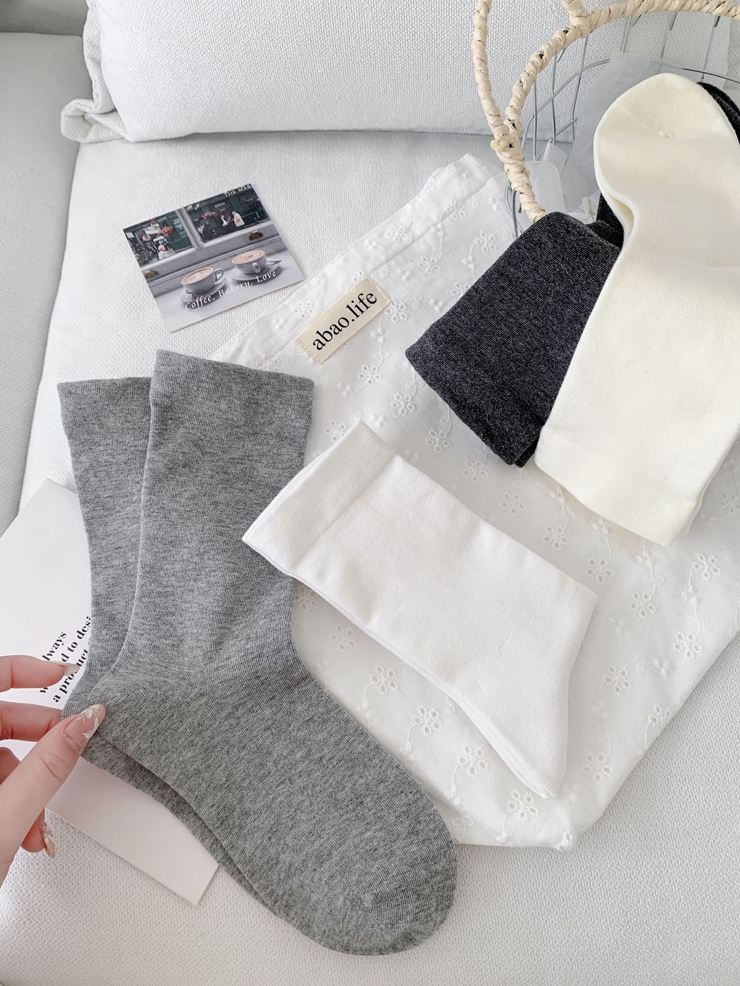 여성용 파일 양말, 흰색 종아리 양말, 작은 가죽 신발과 어울리는 봄, 가을, 검은색 양말, 얇은 가을, 겨울, 여름용 뼈없는 양말스토어 가기