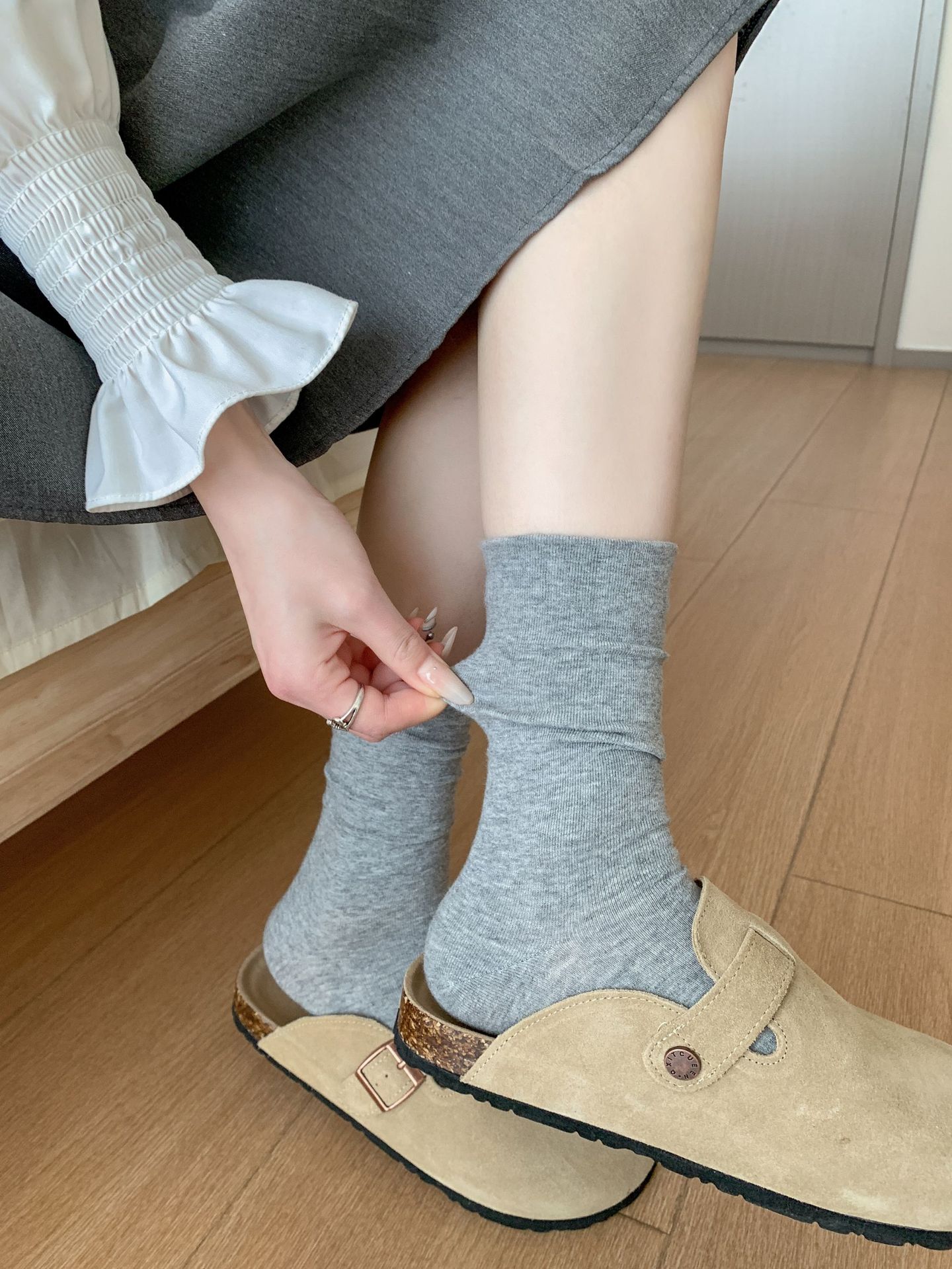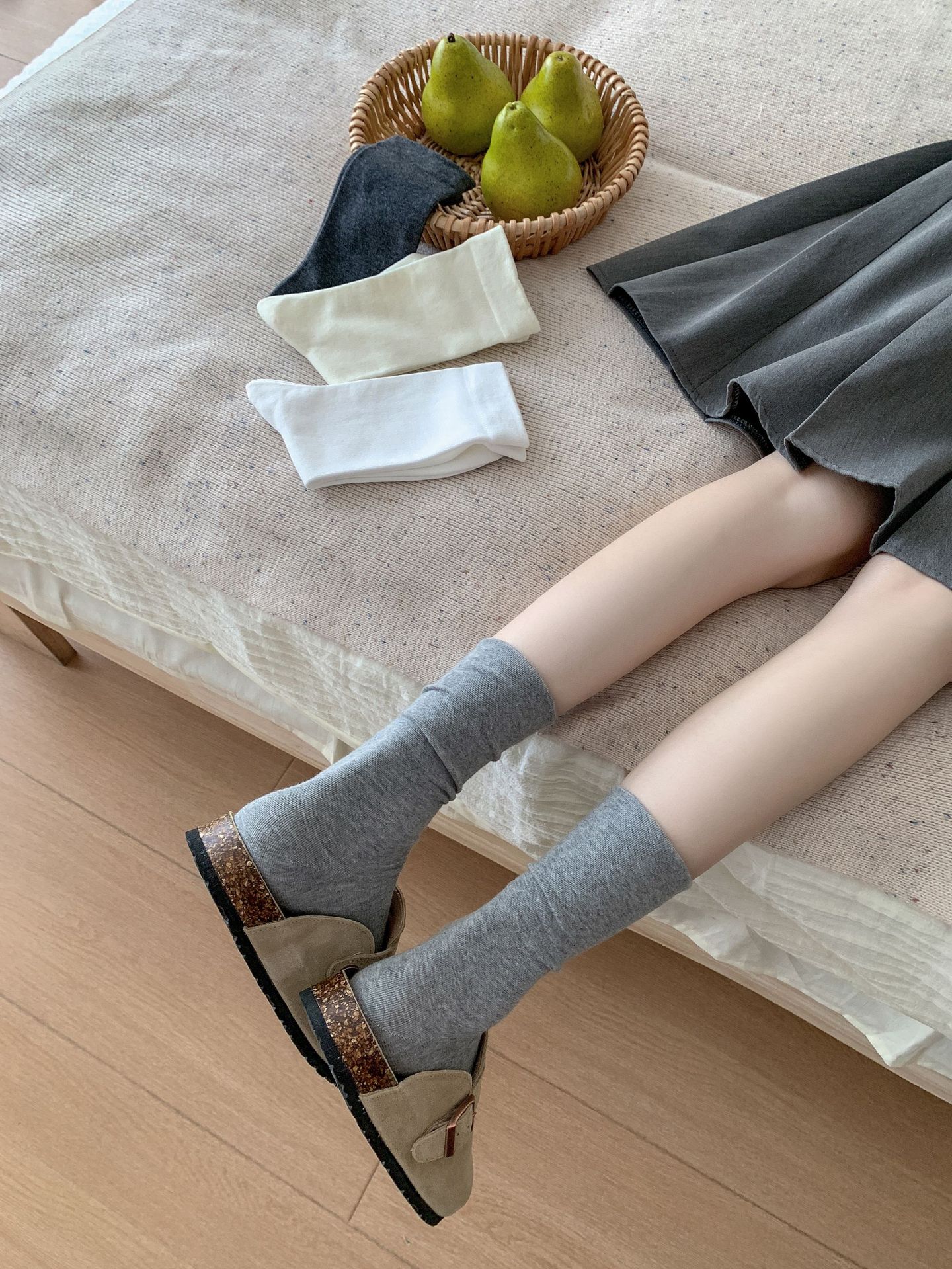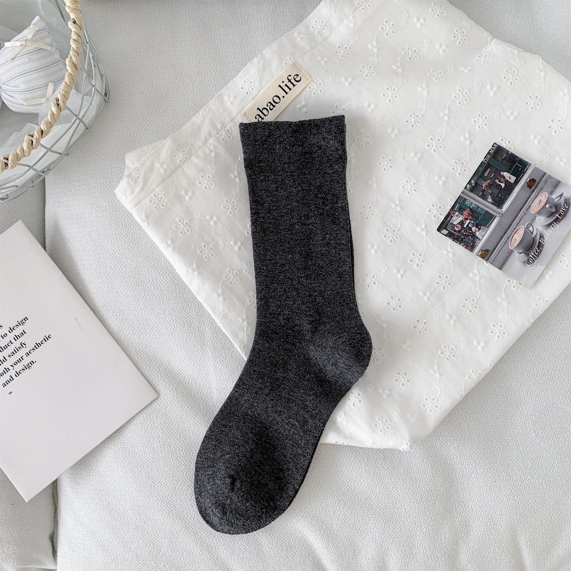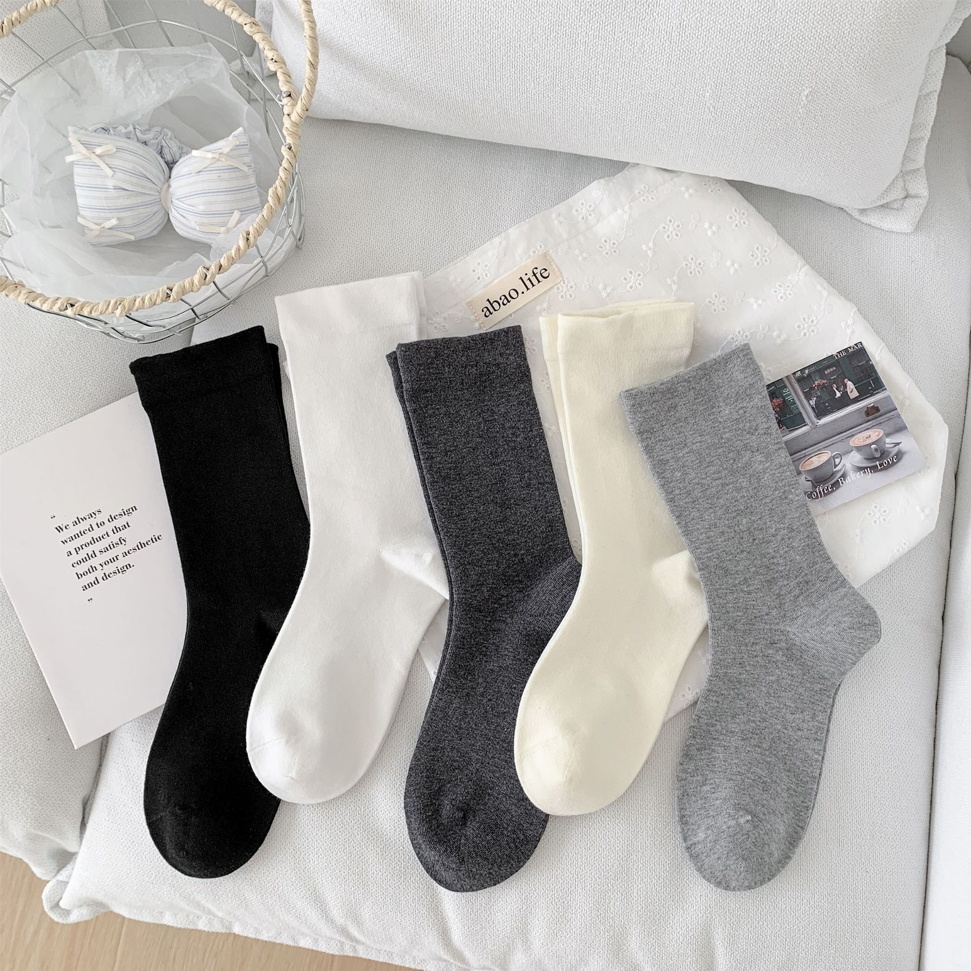 여성용 파일 양말, 흰색 종아리 양말, 작은 가죽 신발과 어울리는 봄, 가을, 검은색 양말, 얇은 가을, 겨울, 여름용 뼈없는 양말스토어 가기