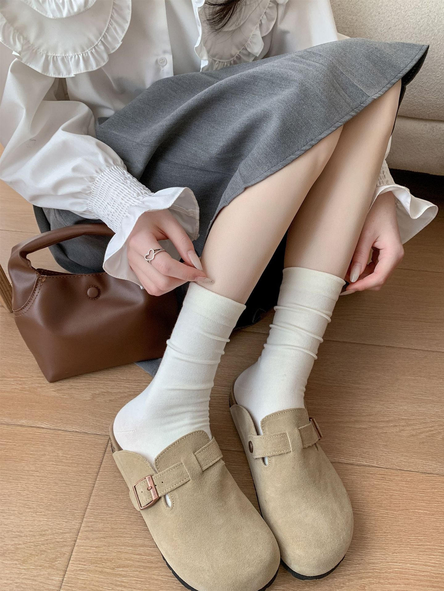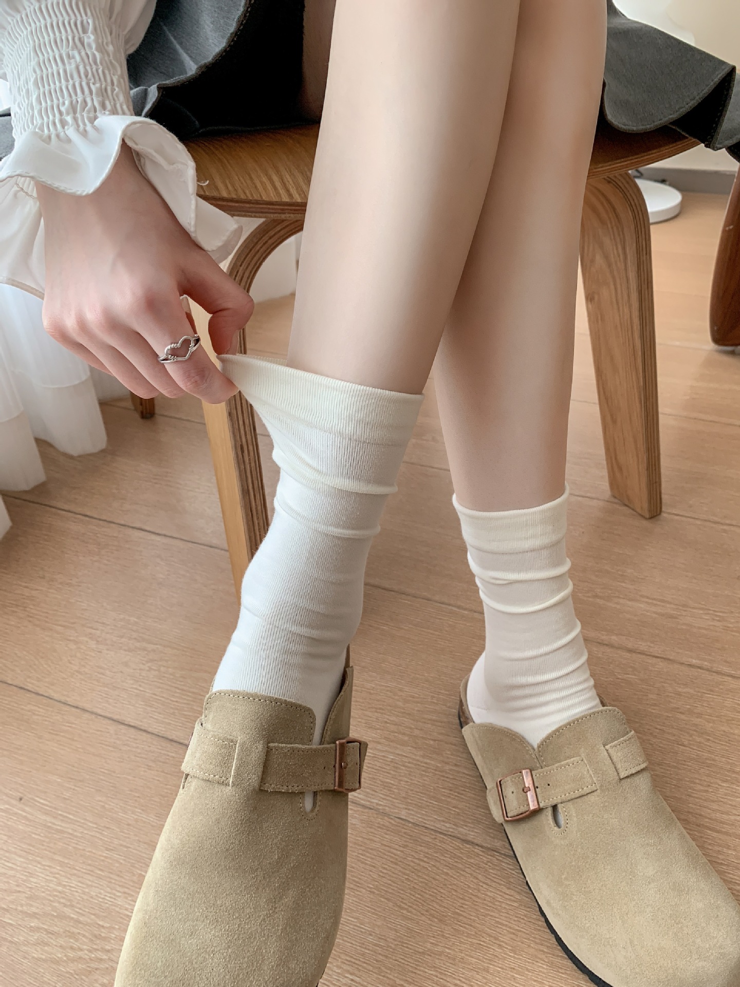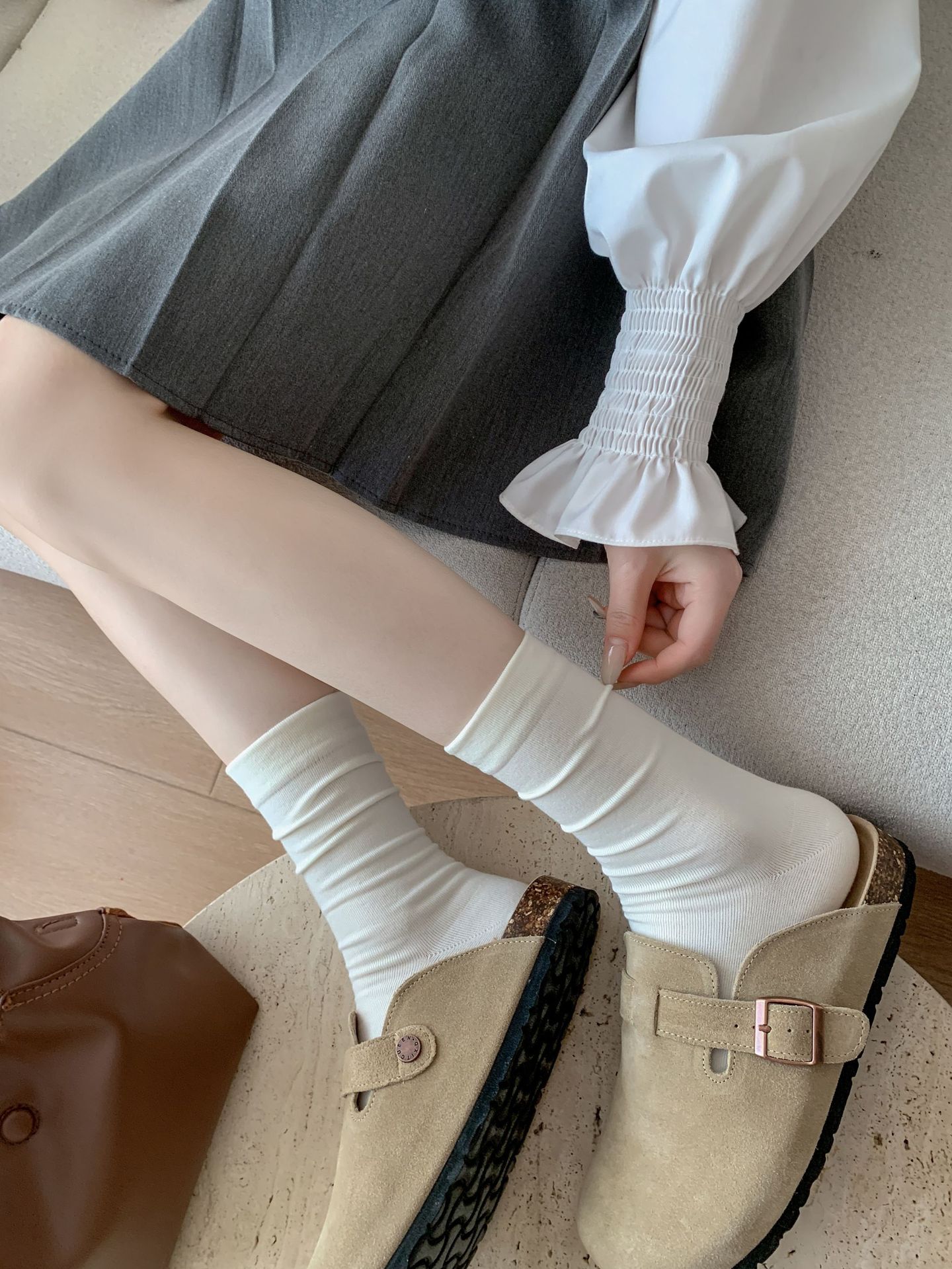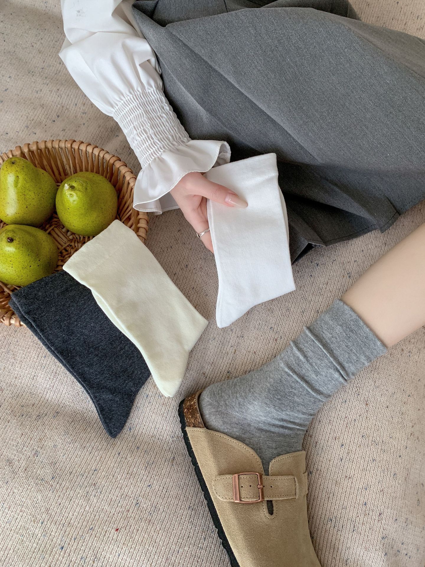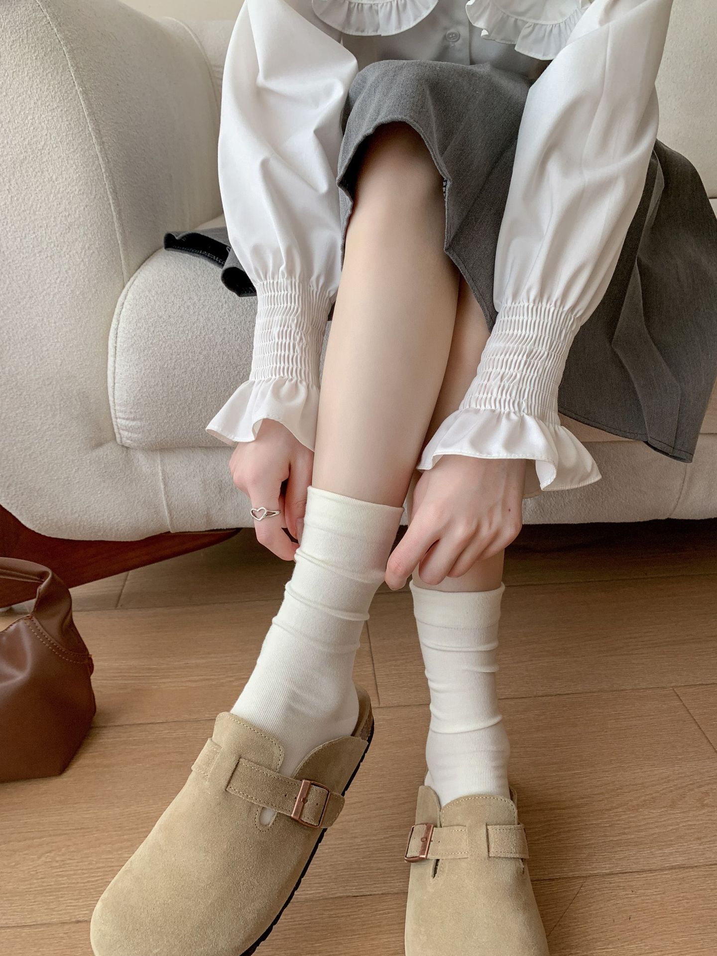 여성용 파일 양말, 흰색 종아리 양말, 작은 가죽 신발과 어울리는 봄, 가을, 검은색 양말, 얇은 가을, 겨울, 여름용 뼈없는 양말스토어 가기
