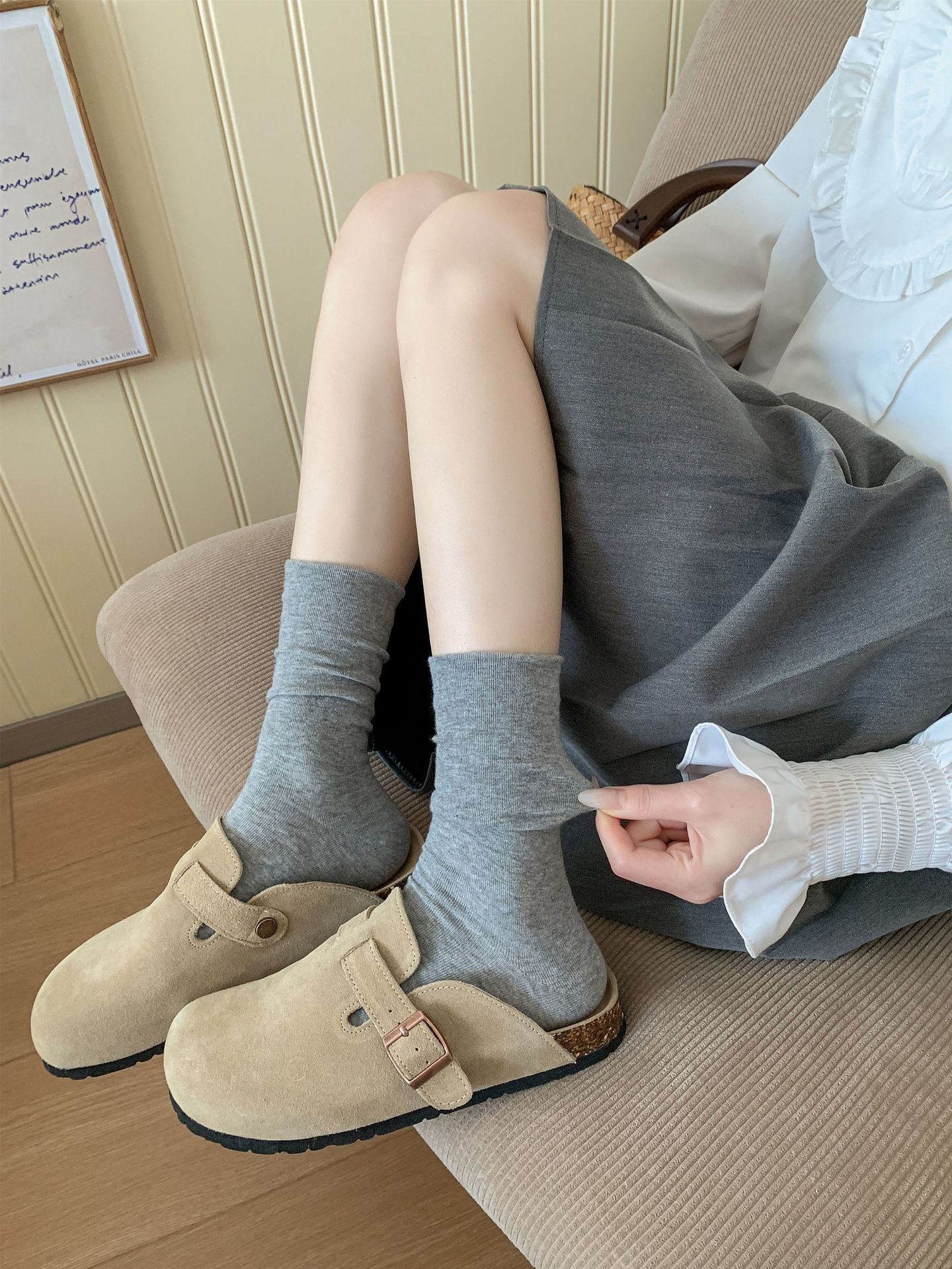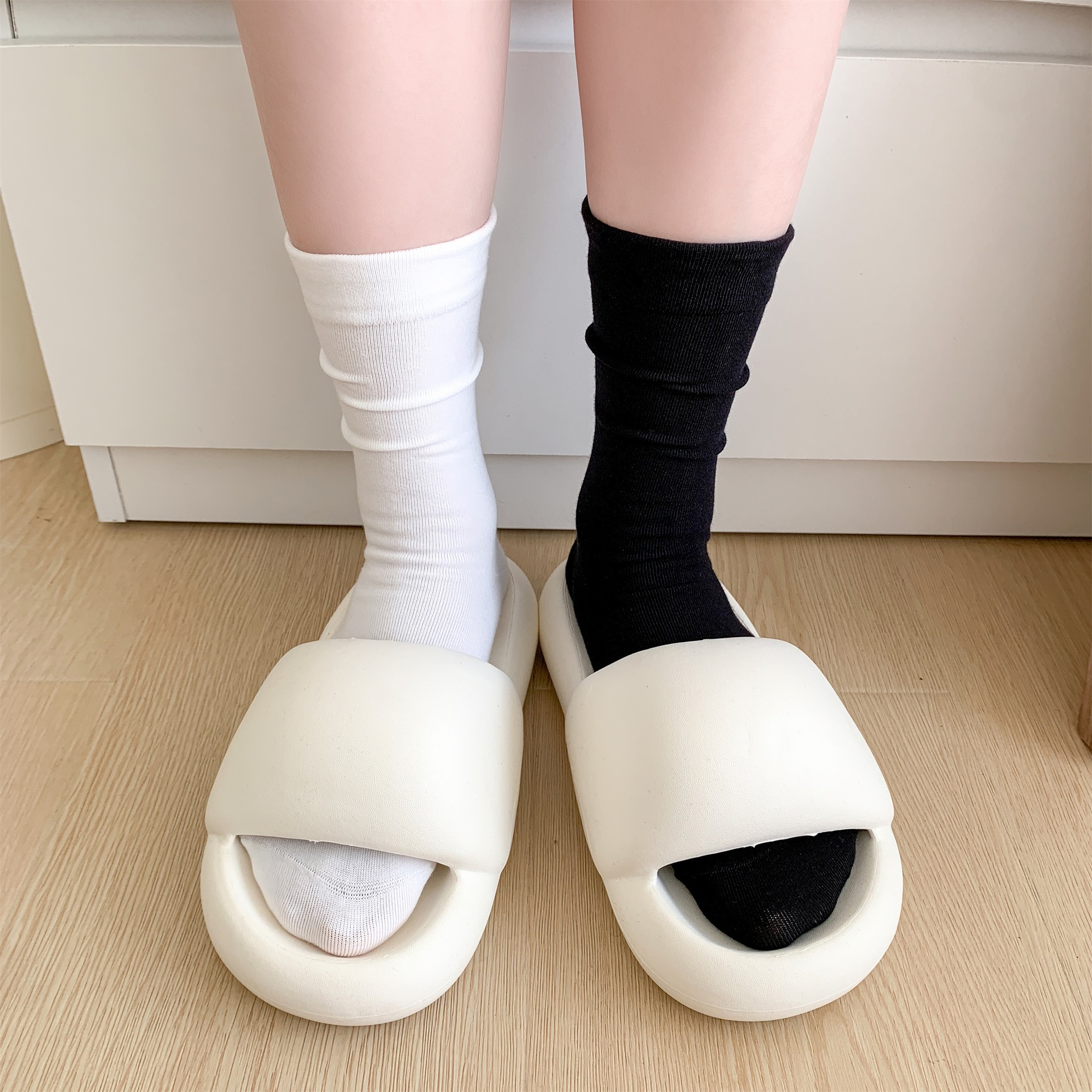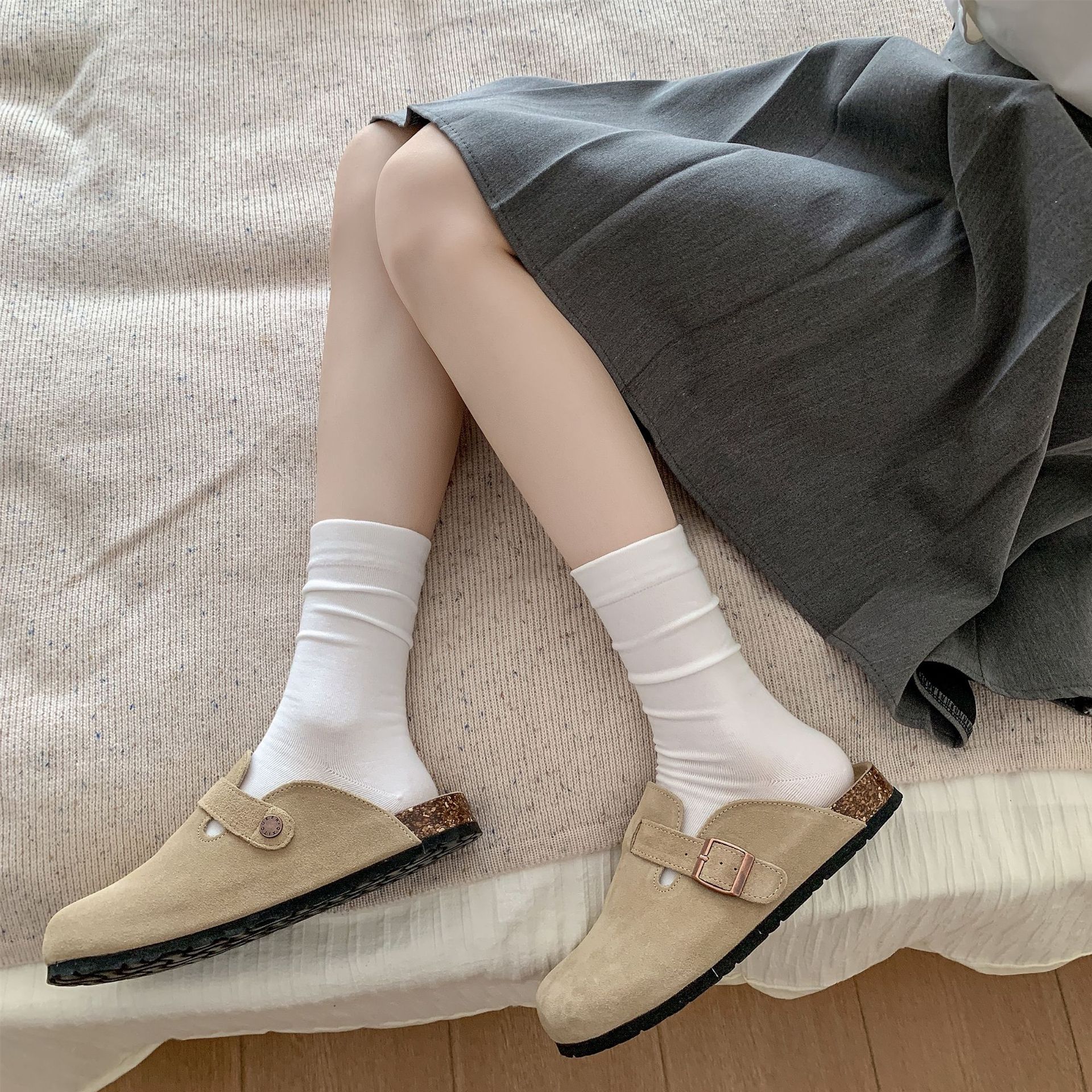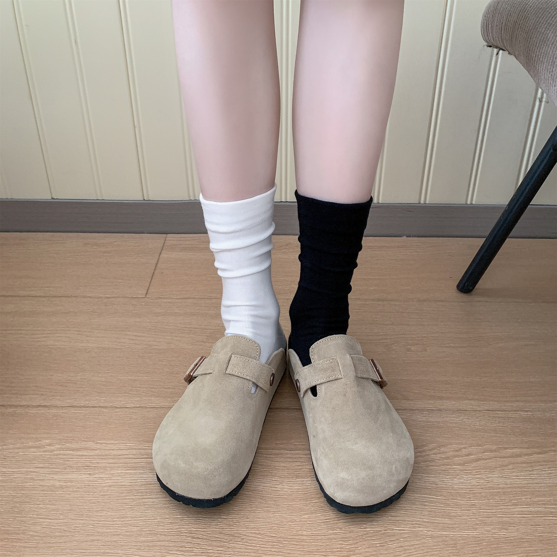 여성용 파일 양말, 흰색 종아리 양말, 작은 가죽 신발과 어울리는 봄, 가을, 검은색 양말, 얇은 가을, 겨울, 여름용 뼈없는 양말스토어 가기