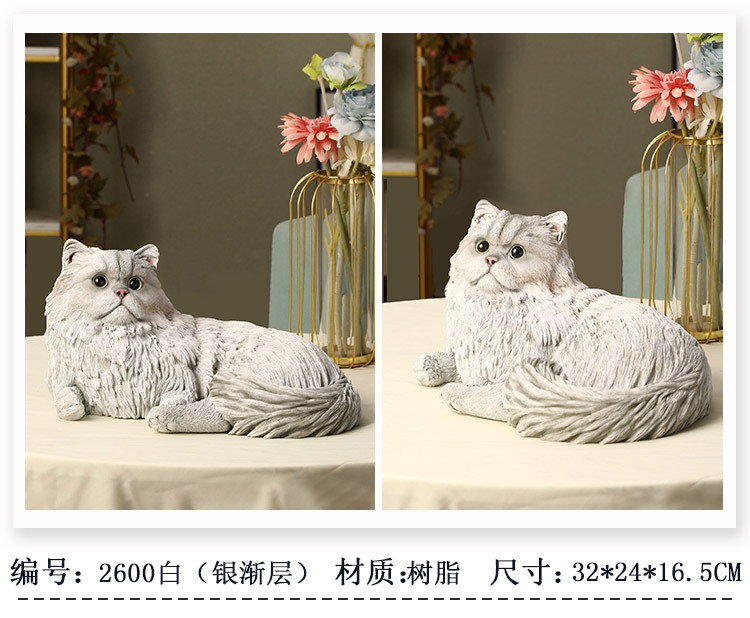 크리 에이 티브 귀여운 고양이 장식품 수지 새끼 고양이 시뮬레이션 Chinchilla 모델 홈 인테리어 거실 데스크탑 장식품