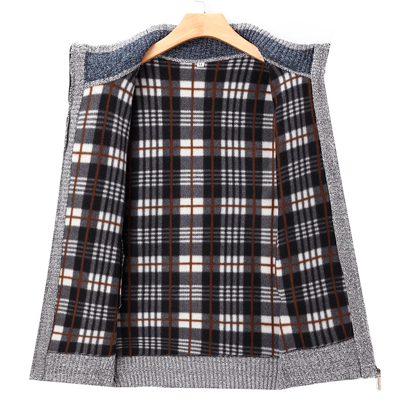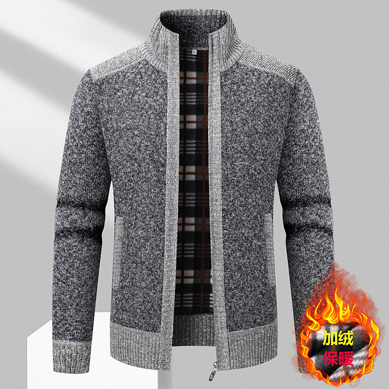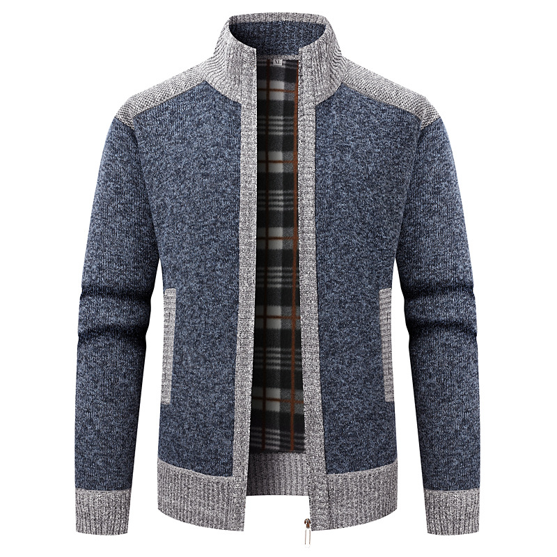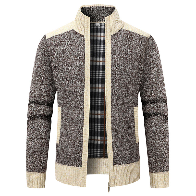 대외 무역 남성용 스탠드 칼라 긴팔 스플 라이스 벨벳 두꺼운 카디건 스웨터 재킷 남성용 따뜻한 루즈 스웨터
