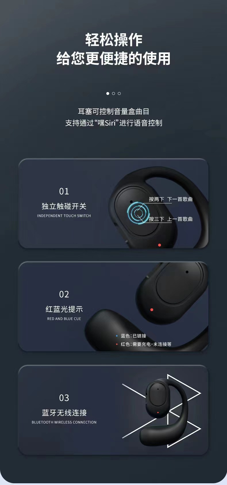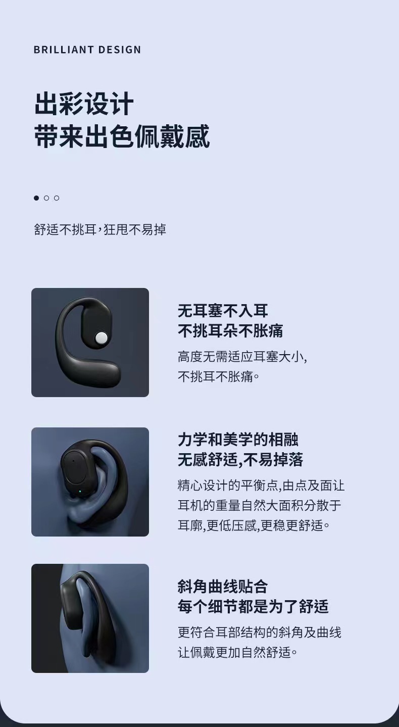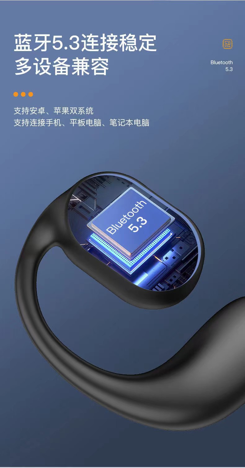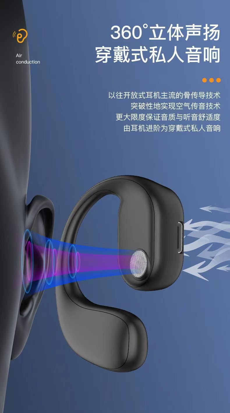 OWS 블루투스 헤드셋은 귀에 걸쳐 착용하기 편리하며 스포츠용으로 사용 가능하며 뼈 전도로 소리가 새지 않습니다.스토어 가기