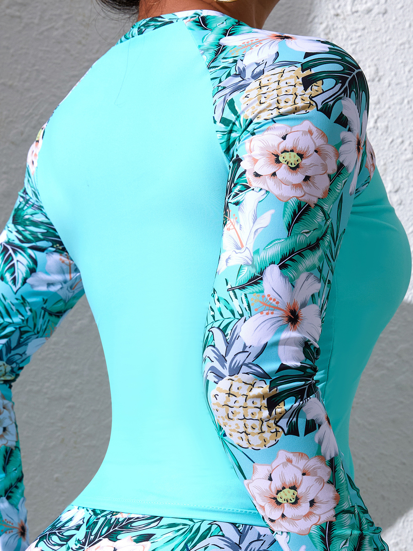 2024 새로운 대외 무역 인기 유럽과 미국 서핑 슈트 긴팔 방지 잠수복 프린트 복서 스플릿 보수적 인 수영복 여성용