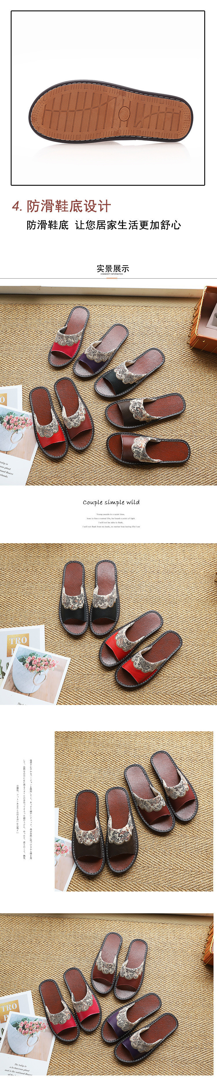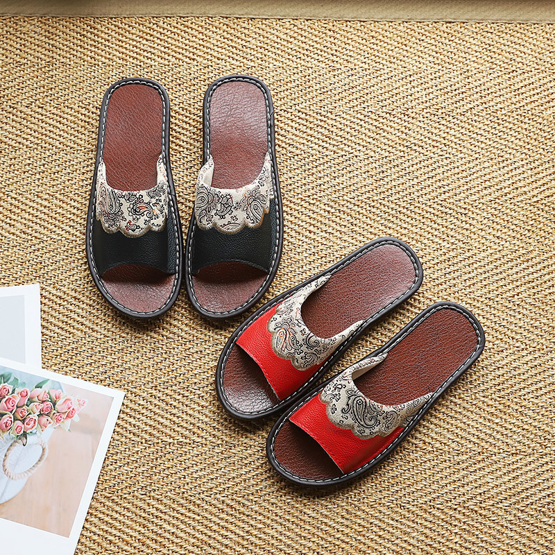 자수 레트로 Cowhide 슬리퍼 실내 남녀 홈 룸 봄과 여름 비 슬립 소프트 하단 가죽 샌들스토어 가기