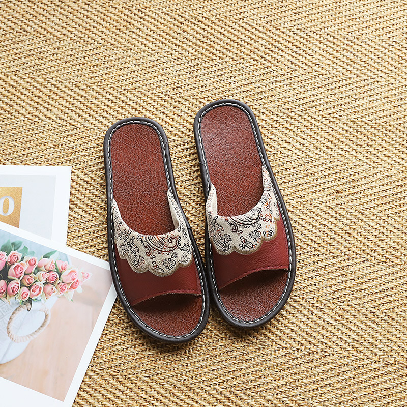 자수 레트로 Cowhide 슬리퍼 실내 남녀 홈 룸 봄과 여름 비 슬립 소프트 하단 가죽 샌들