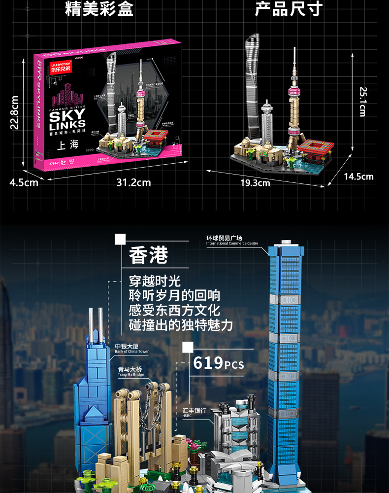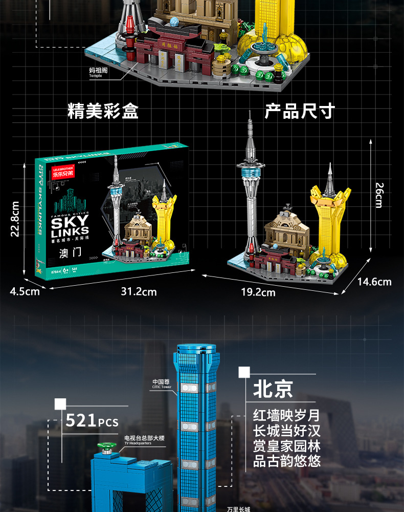 • 6가지 도시 스카이라인 모델 전체 세트(Lele Brothers 8784)