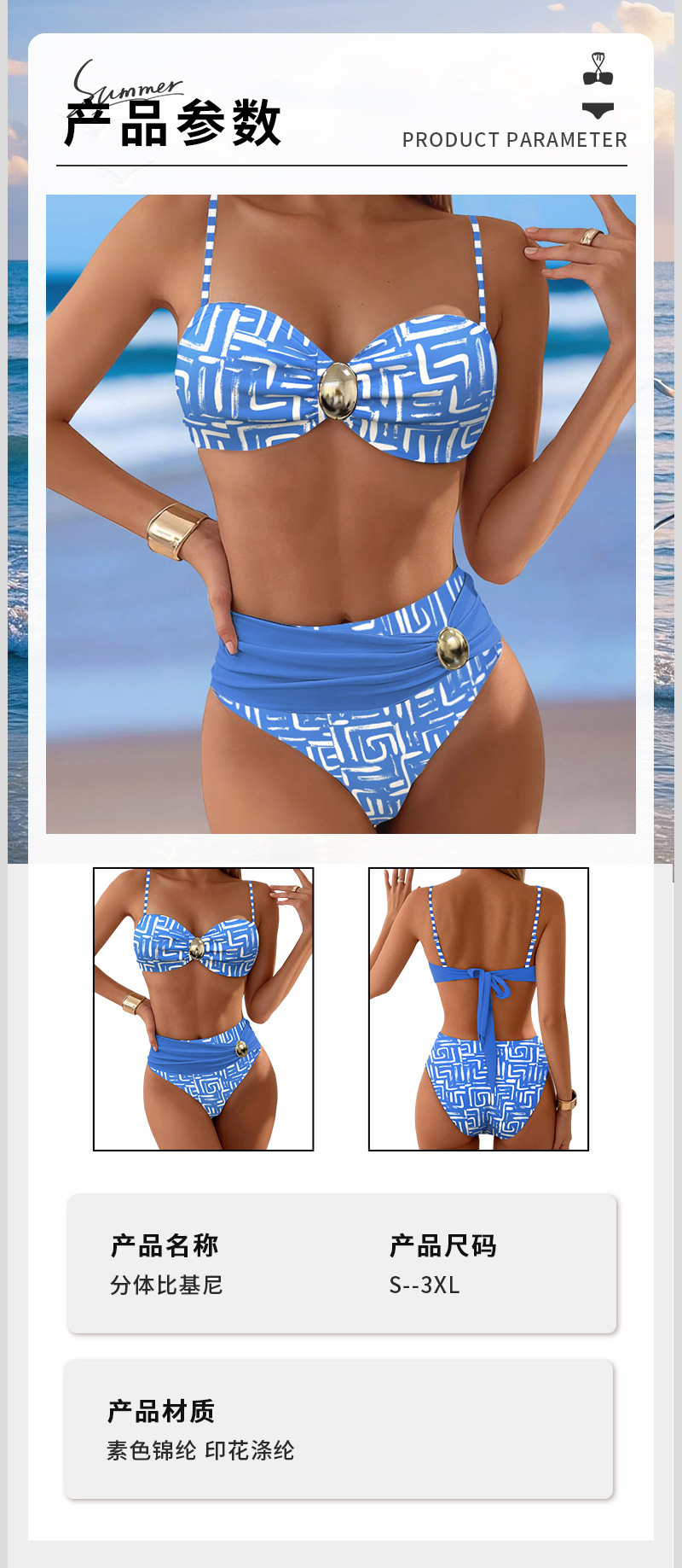 새로운 비키니 수영복, 여성스러운 유럽과 미국의 복고풍 등이없는 크로스 보더 패션 대외 무역 여성 수영복 투피스 세트스토어 가기
