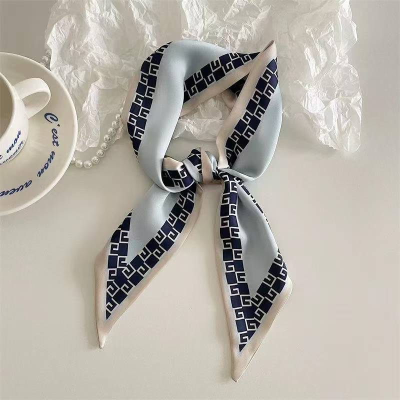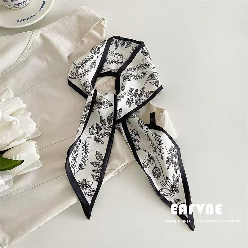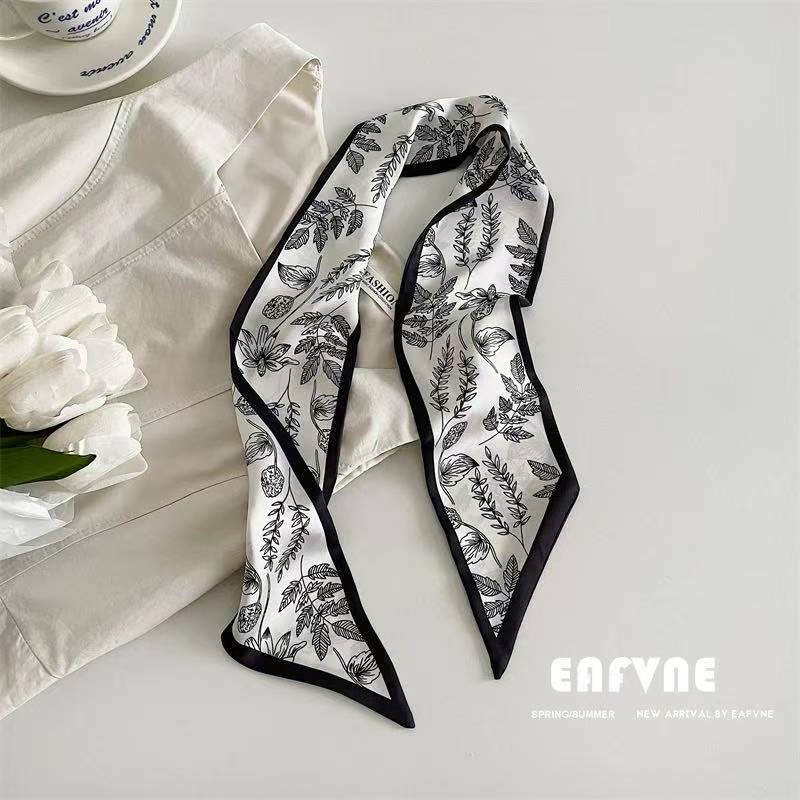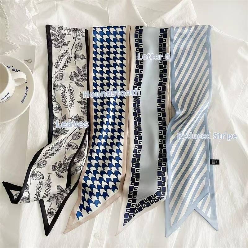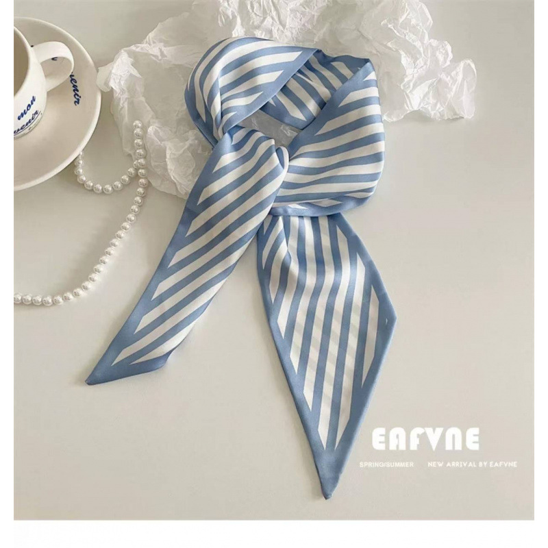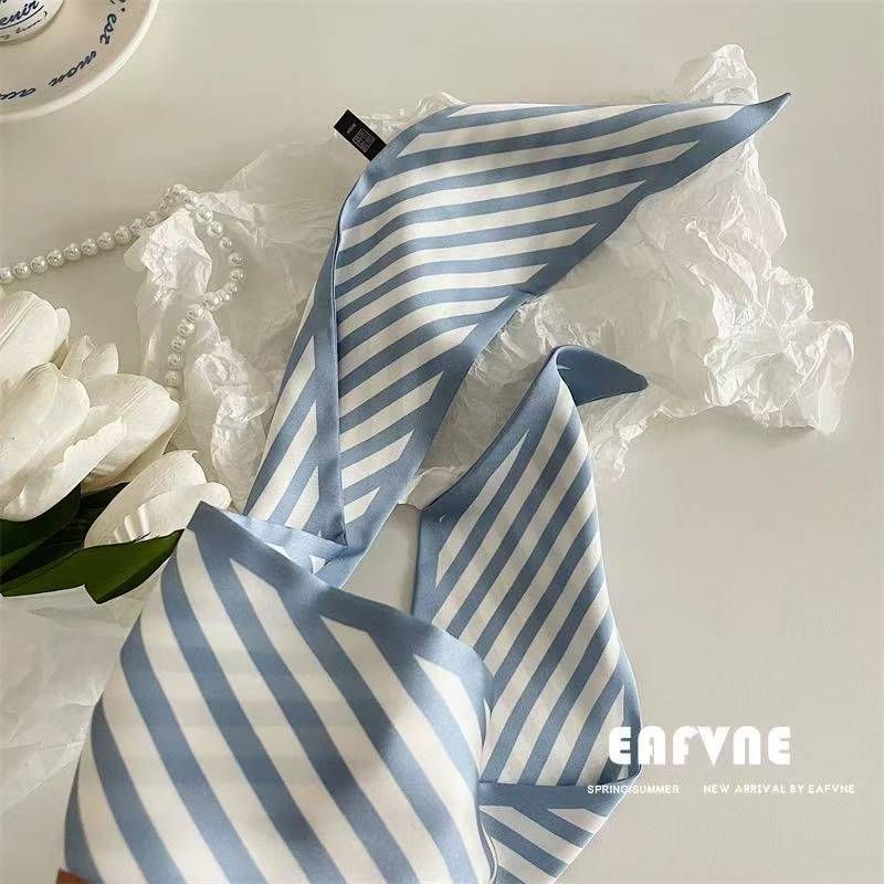한국 신상 블루 실크 스카프, 봄 여름 다용도 머리끈, 롱 리본, 고급스러운 패션 스카프 장식