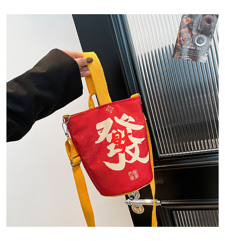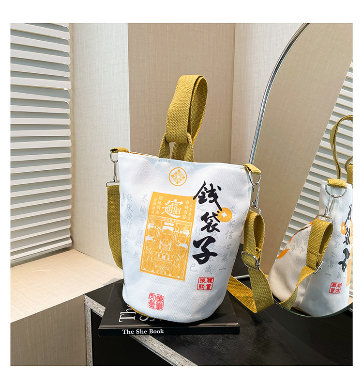 새로운 돈 가방 캔버스 버킷 가방 여성 국가 유행 포춘 대용량 핸드백 패션 인쇄 어깨 크로스 바디 백