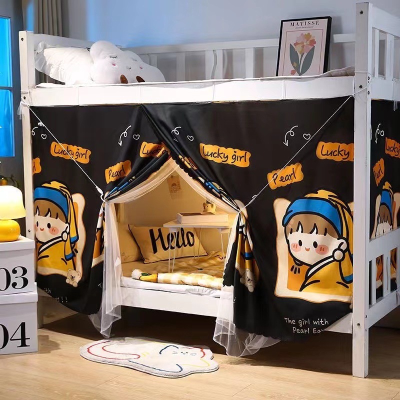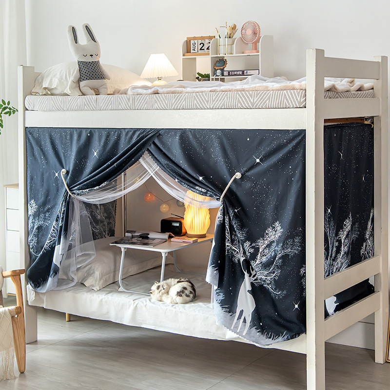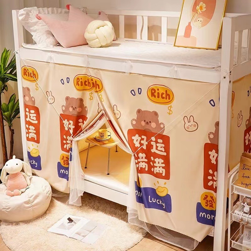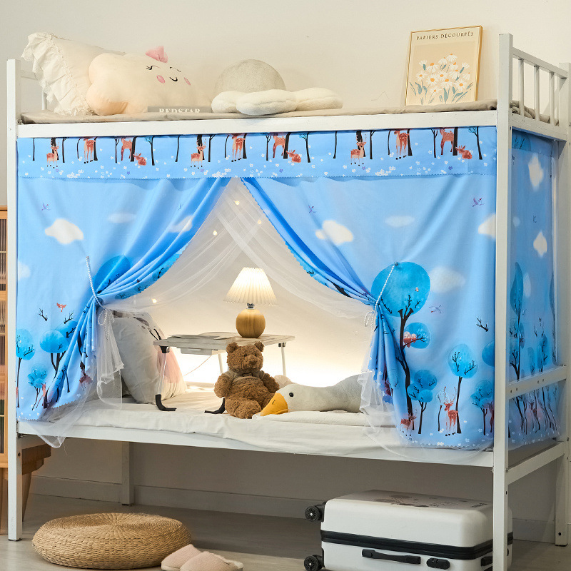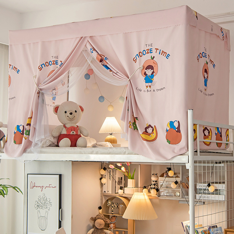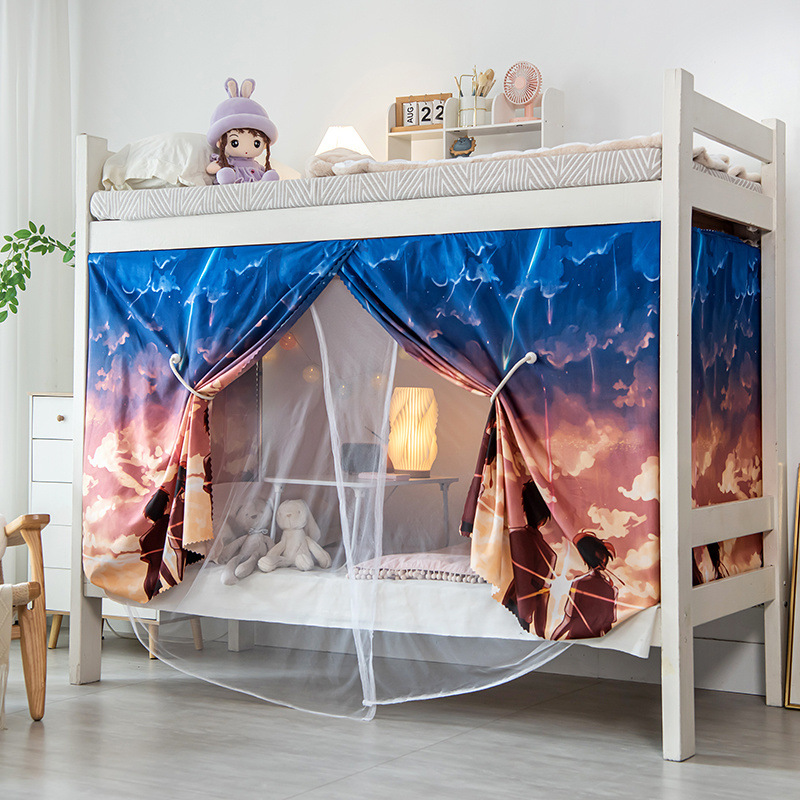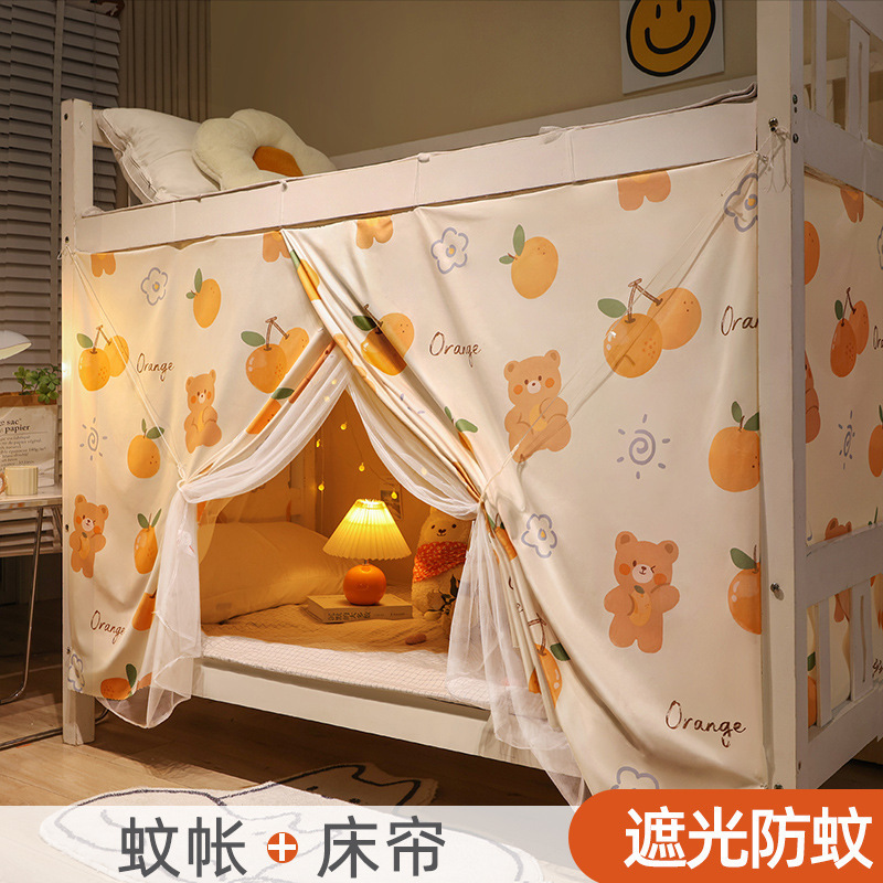 학생 기숙사 일체형 침대 커튼 여성 기숙사 0.9m ins 스타일 이중 목적 모기장 상단 및 하단 레벨 차광 천스토어 가기