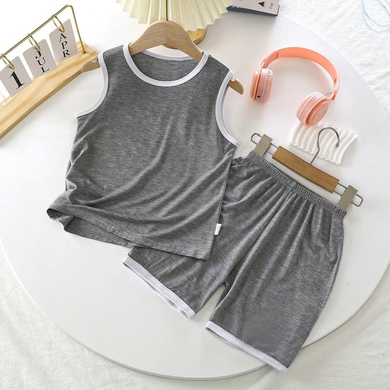 남자 아기 모달 잠옷 여름 얇은 2025 새로운 소년 여름 얼음 실크 가정 의류 어린이 아기 조끼스토어 가기