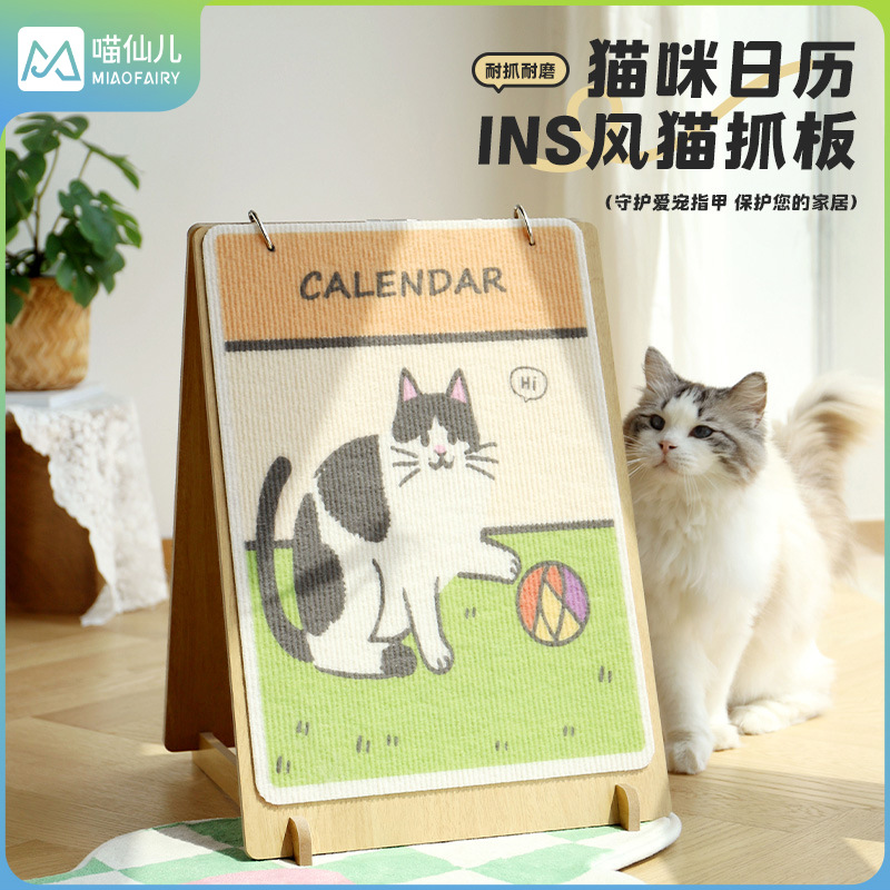 Meow Fairy 고양이 달력 고양이 스크래치 보드 귀엽고 멋진 발톱 연삭 만화 고양이 장난감 칩이 없는 수직 고양이 발톱 보드