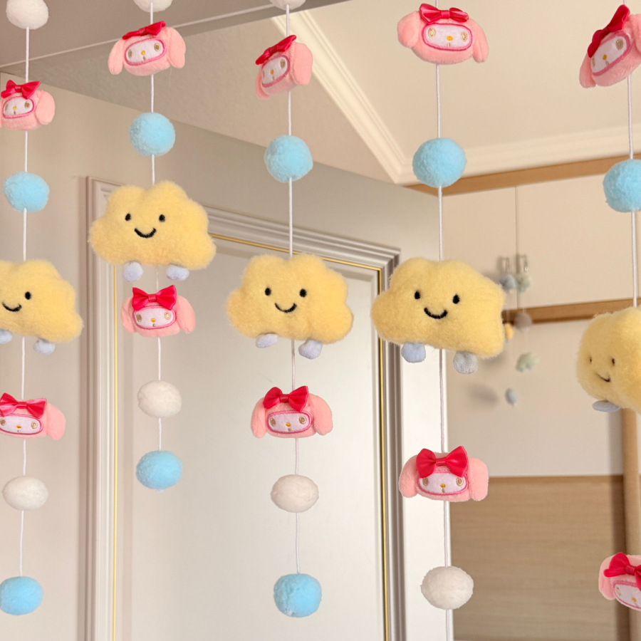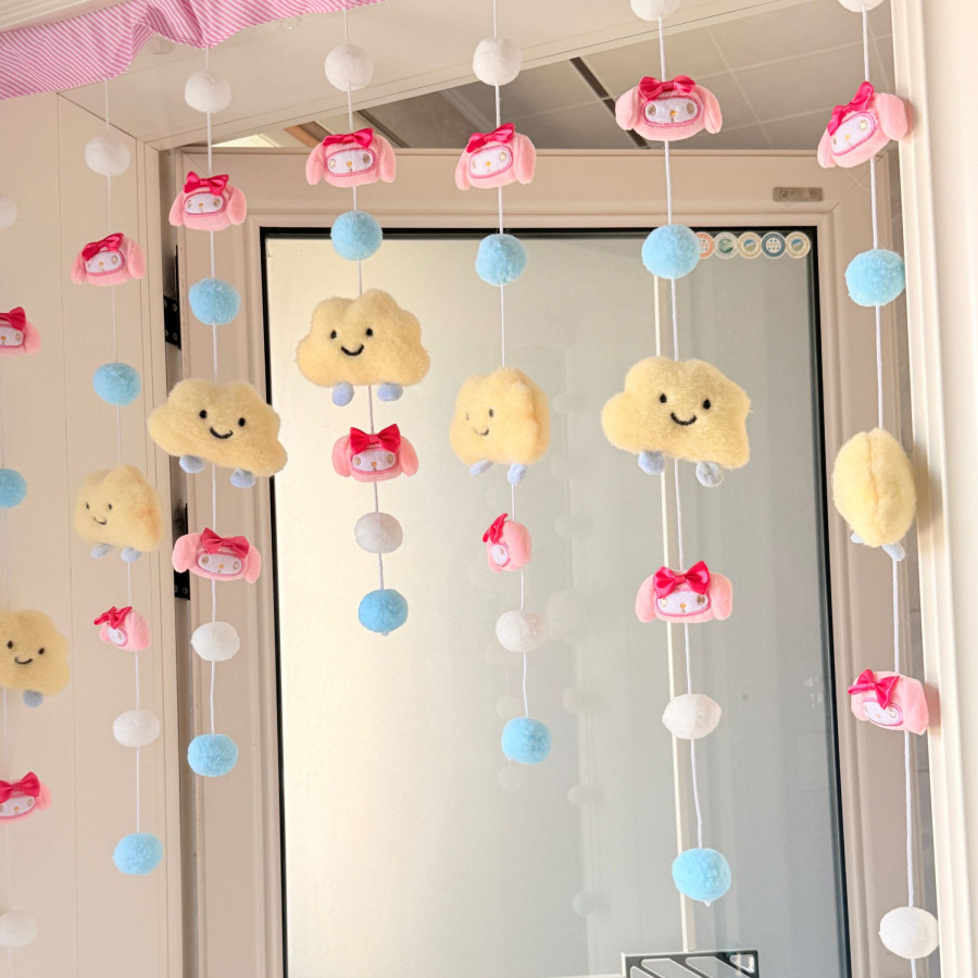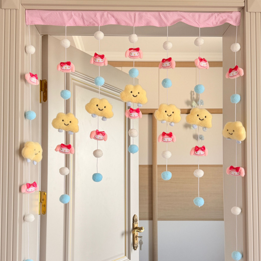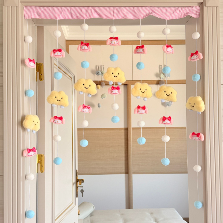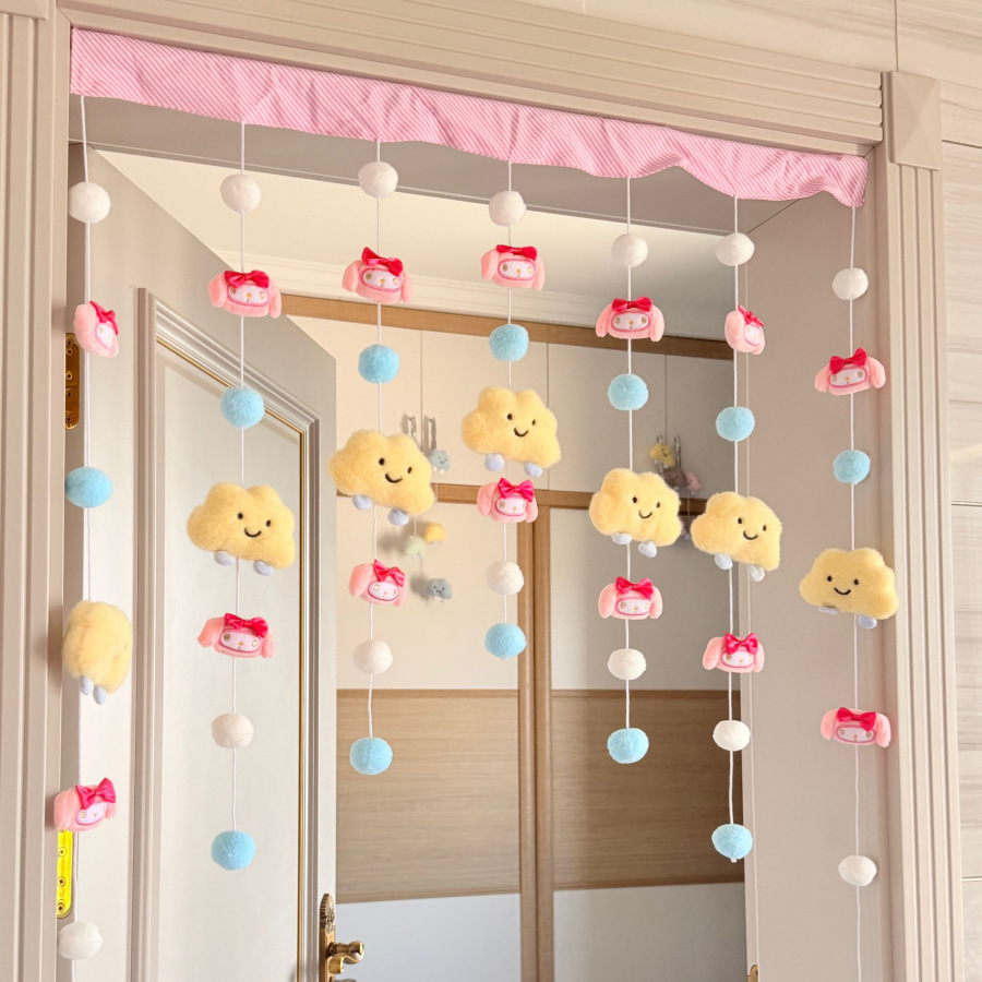 소녀 문 커튼 구름 어린이 방 다목적 방 침실 파티션 장식 교수형 커튼 귀여운 문 커튼