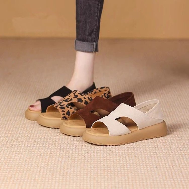 2025 새로운 여름 폭발 패션 편안한 레트로 올매치 플랫 하이 엔드 소프트 바텀 오픈 발가락 여성용 미끄럼 방지 샌들스토어 가기