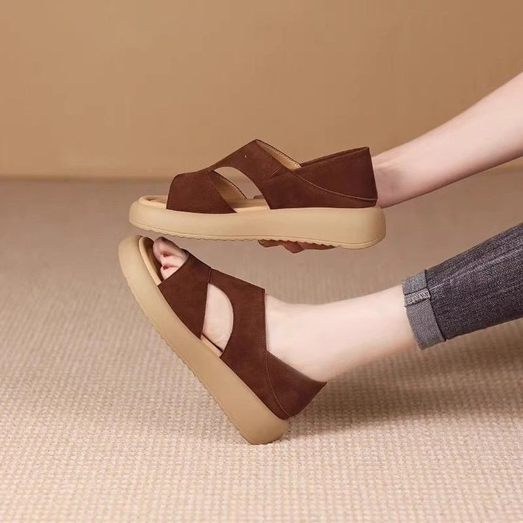 2025 새로운 여름 폭발 패션 편안한 레트로 올매치 플랫 하이 엔드 소프트 바텀 오픈 발가락 여성용 미끄럼 방지 샌들