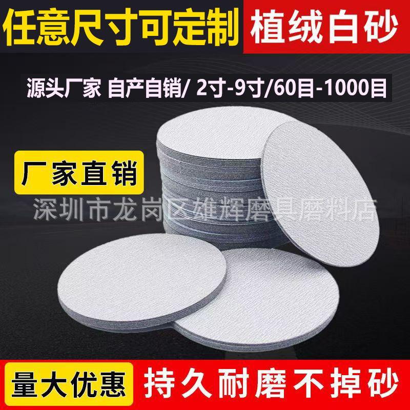 내마모성 흰색 모래 4inch 5inch 공기 연삭기 원형 벨벳 사포 연마 목공 금속 벨벳 자체 접착 연삭 사포