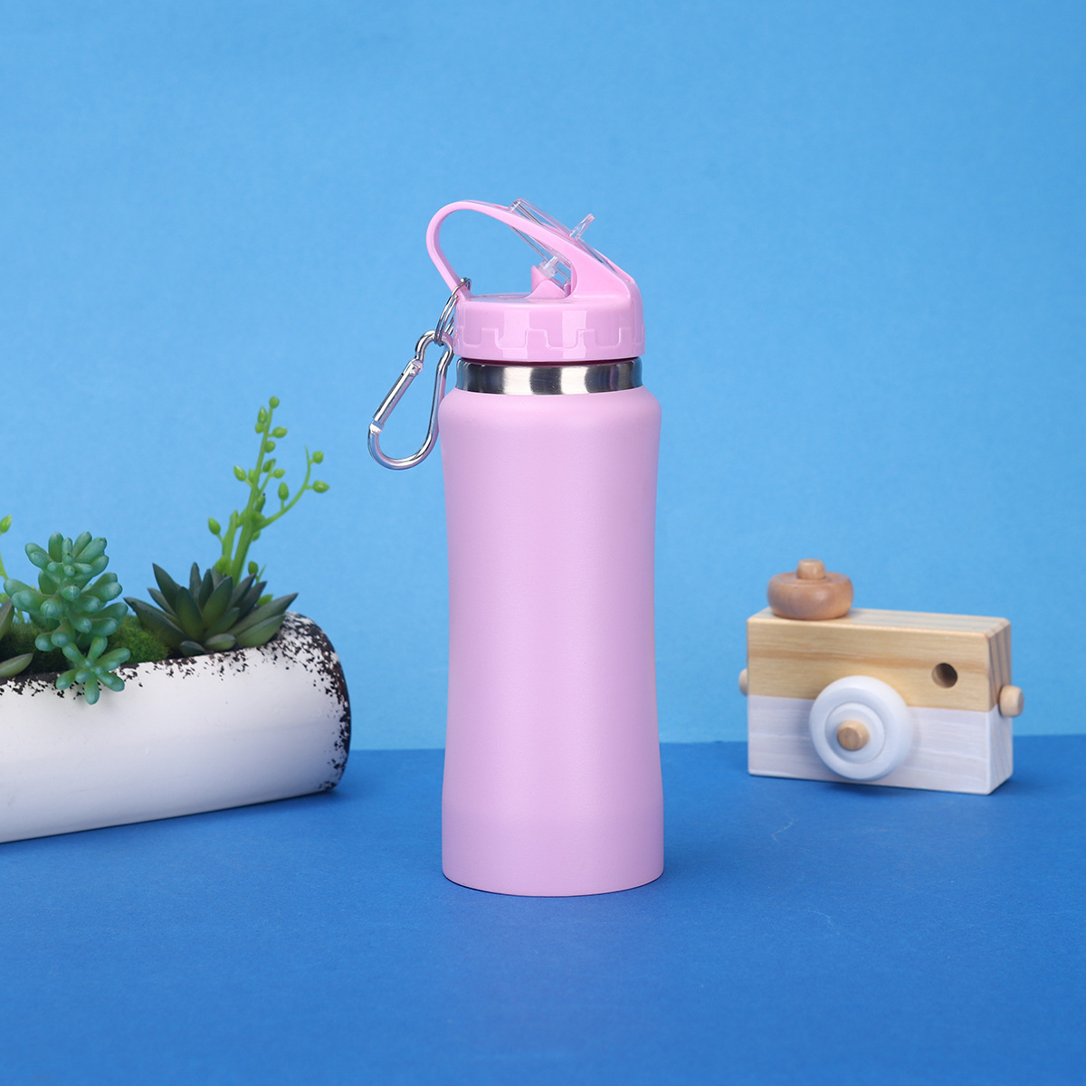 국경 간 304 스테인레스 스틸 절연 컵, 작은 허리, 빨대가 있는 낙하 방지 물컵, 야외 사이클링 및 등산 스포츠 물병