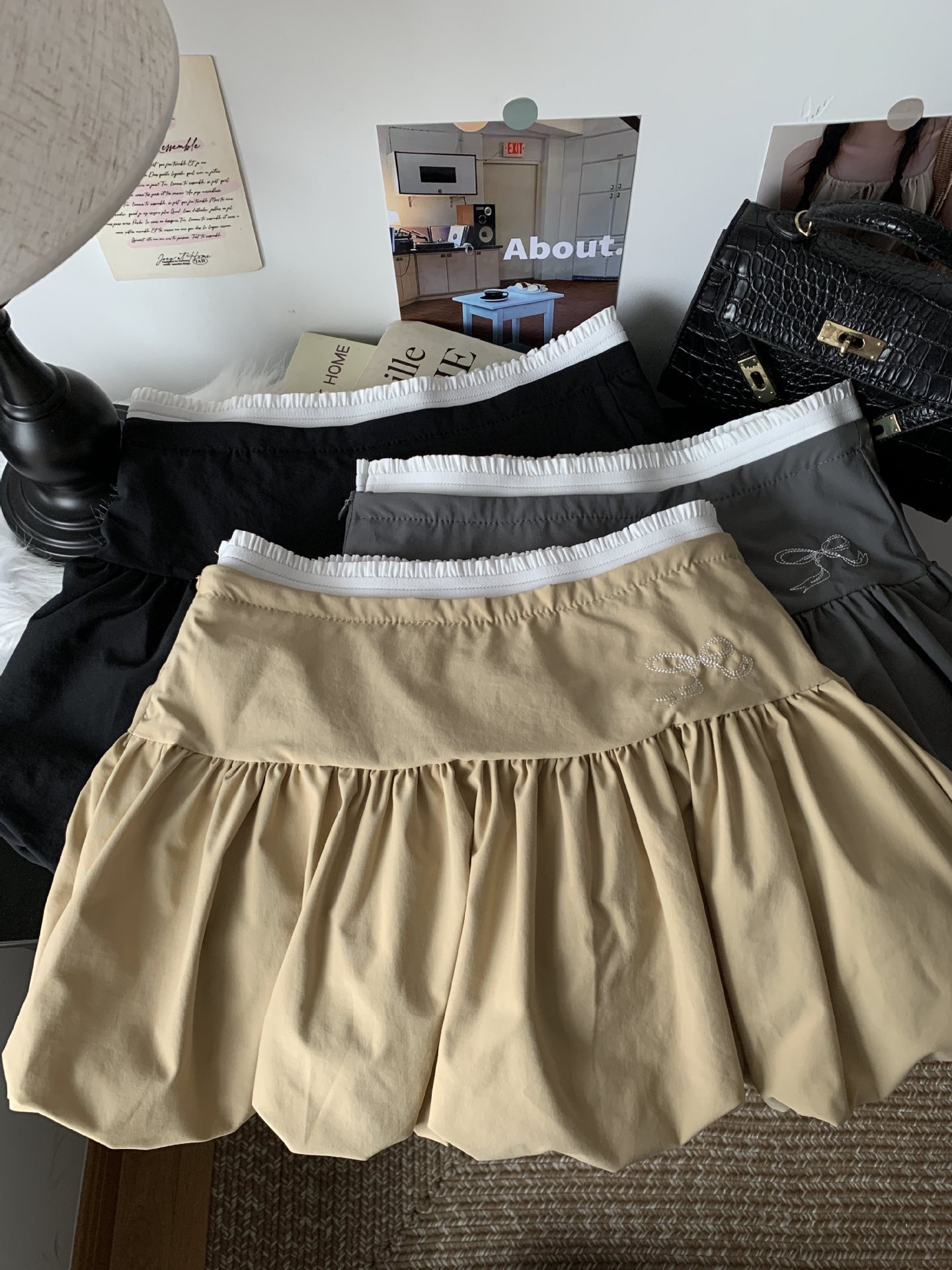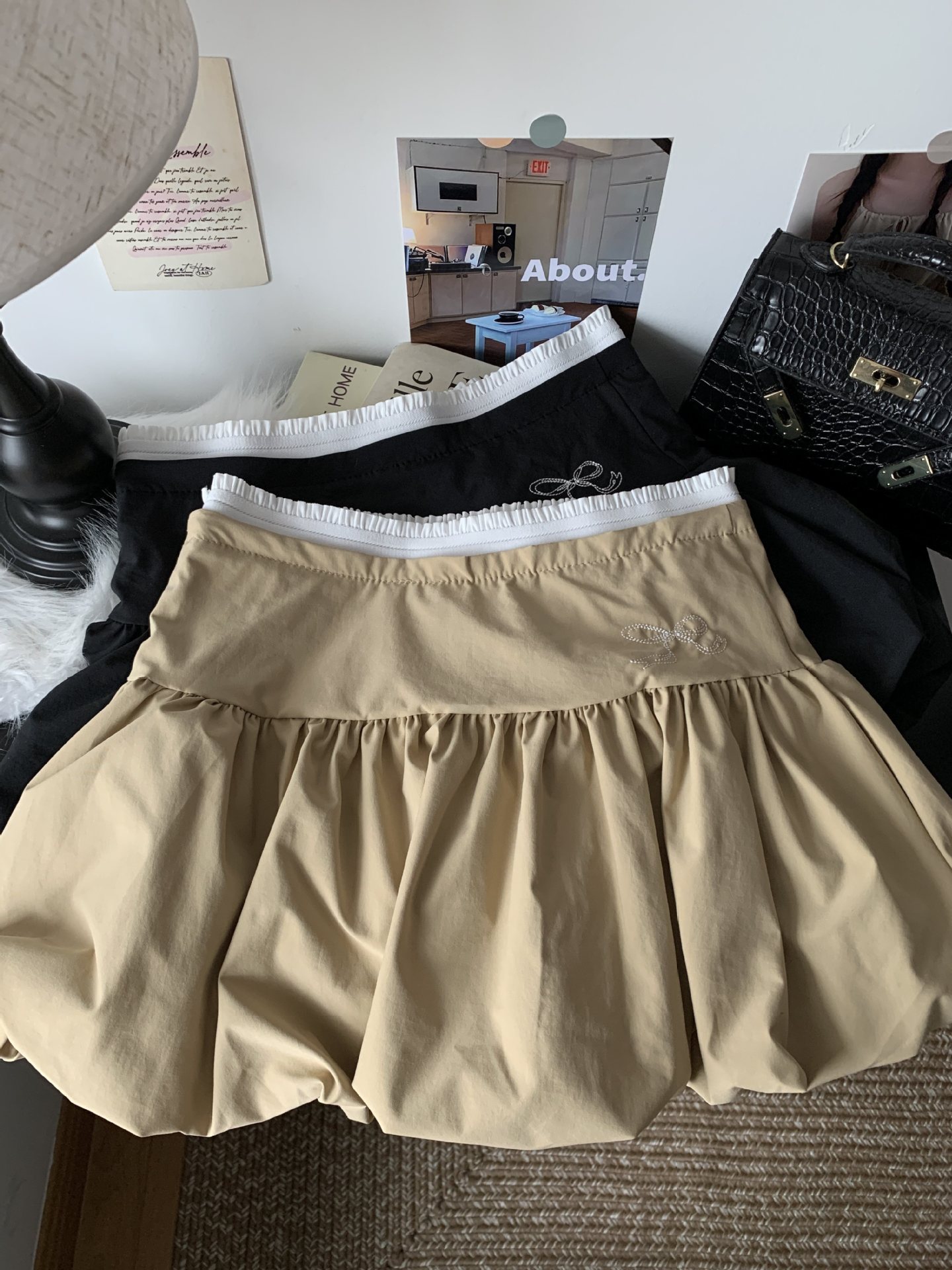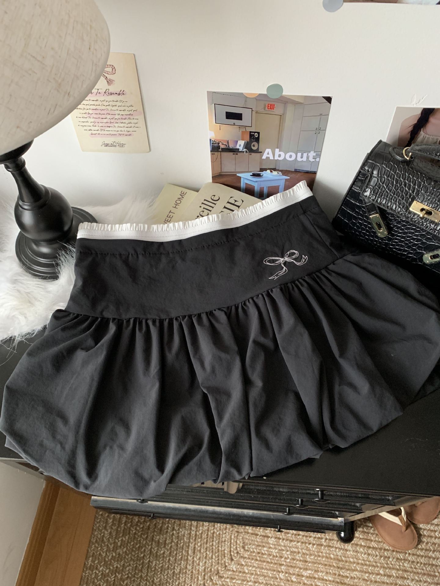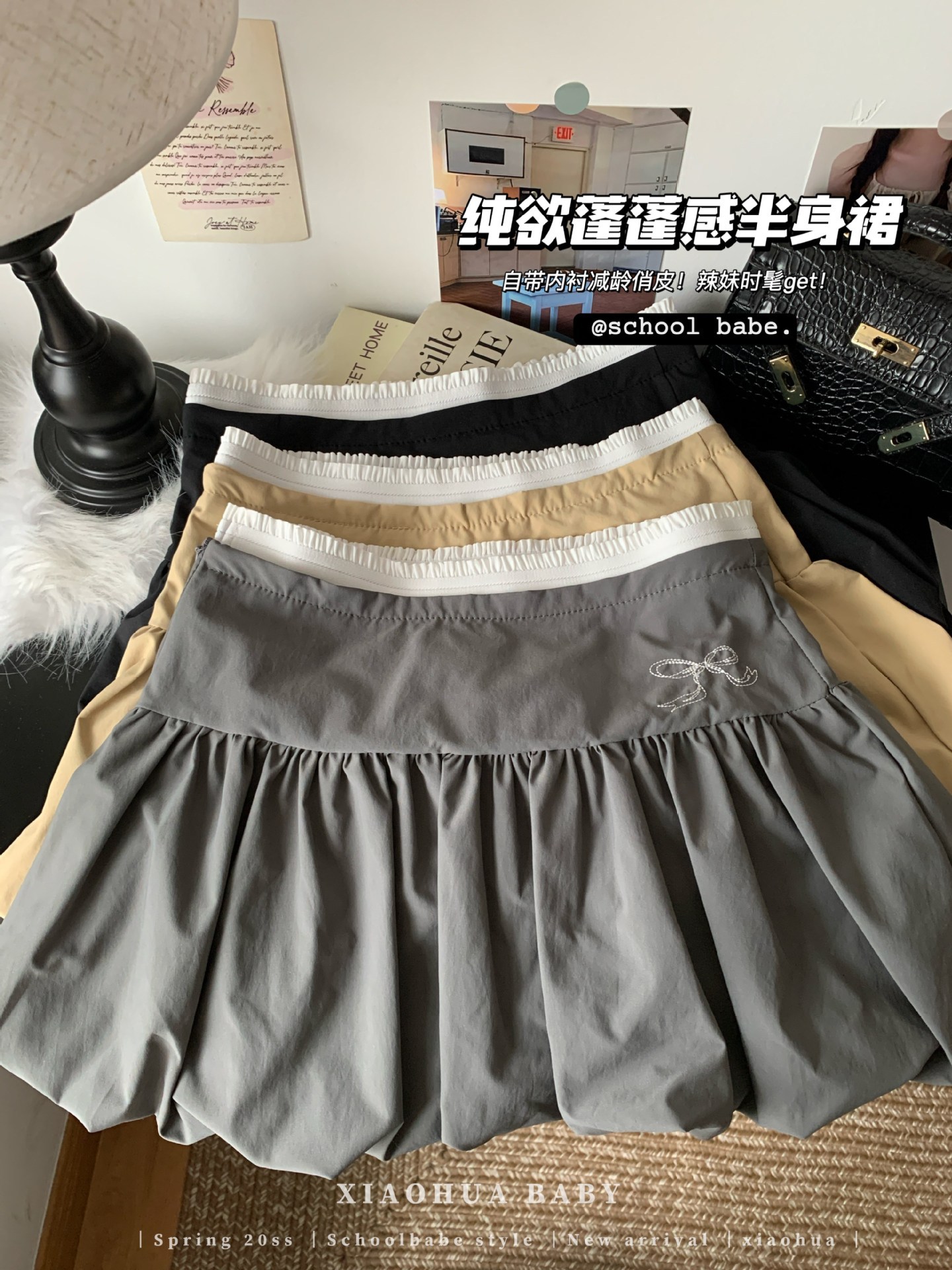 핫걸 플리츠 스커트 여성 여름 하이웨이스트 리본 슬리밍 A라인 숏 스커트 퍼프 스커트스토어 가기