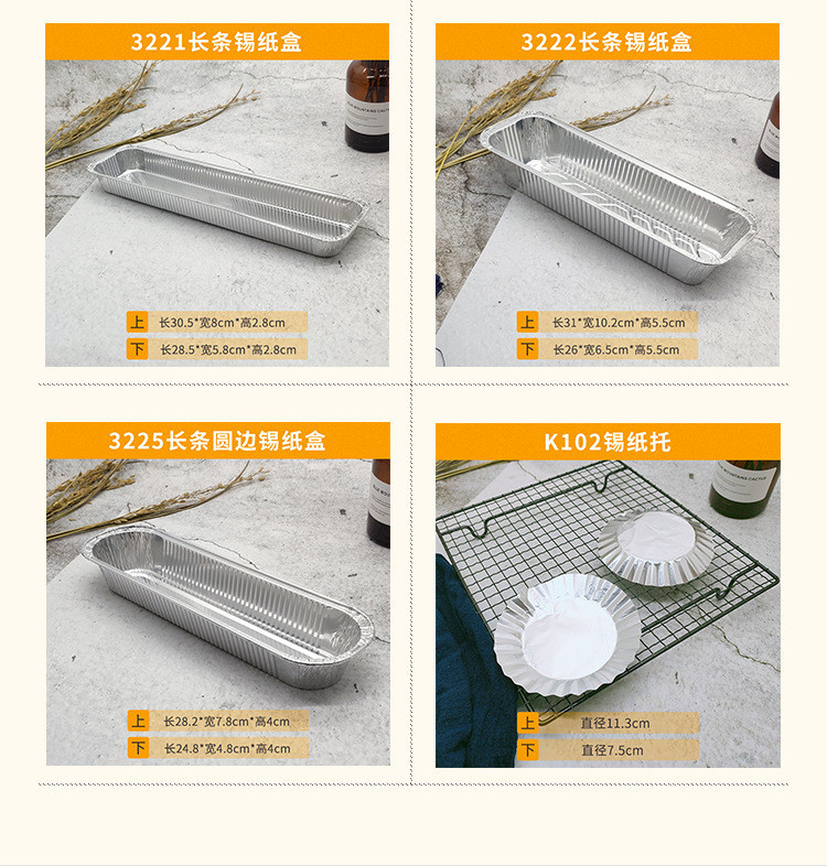 주석 종이 상자 굽기 가구 직사각형 처분할 수 있는 고온 저항하는 알루미늄 호일 케이크 금형 빵 주석 종이 홀더