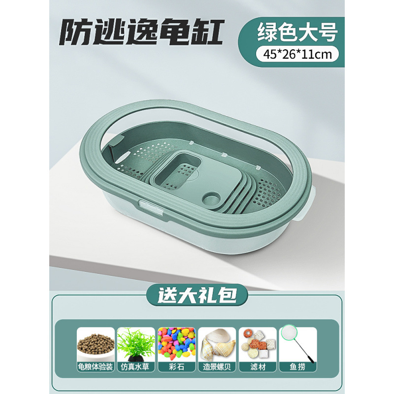 • 배수 거북이 분지 대형 녹색 + 필터 + 사육 선물 팩