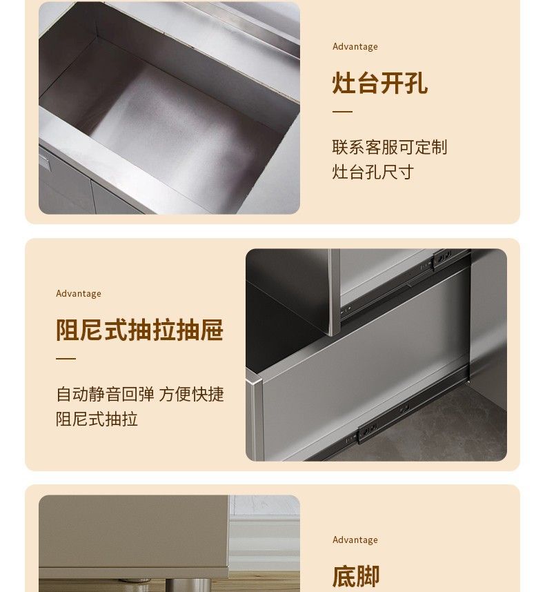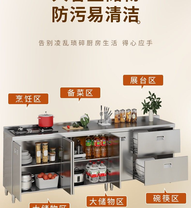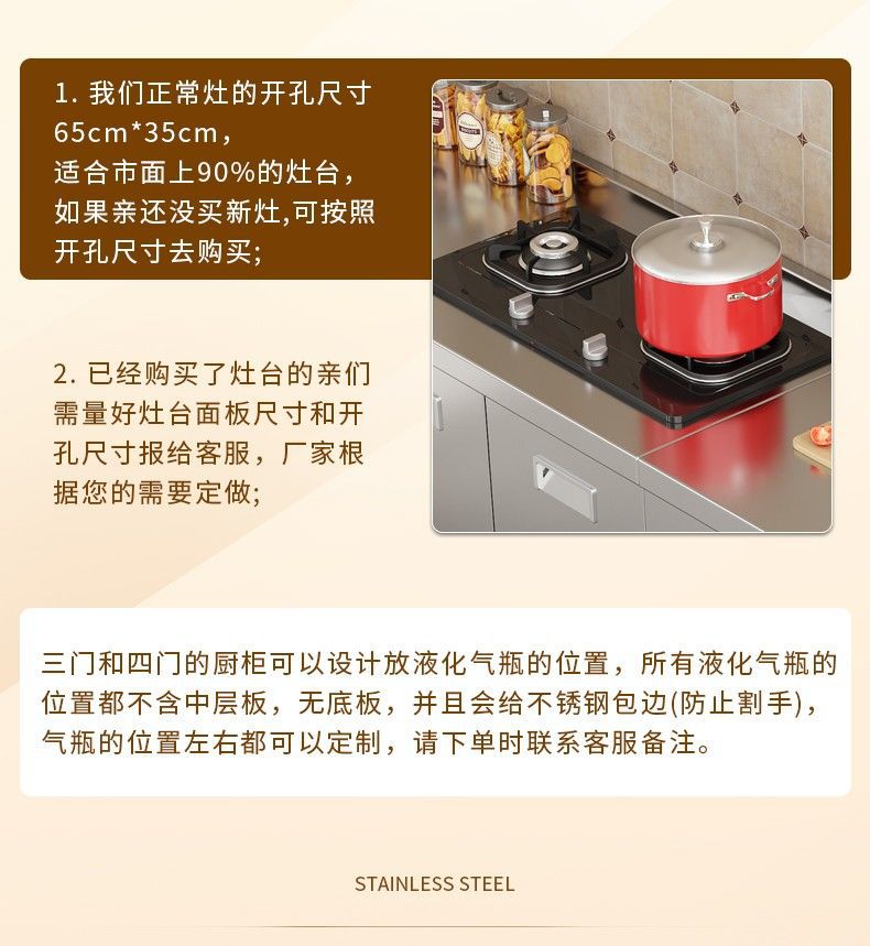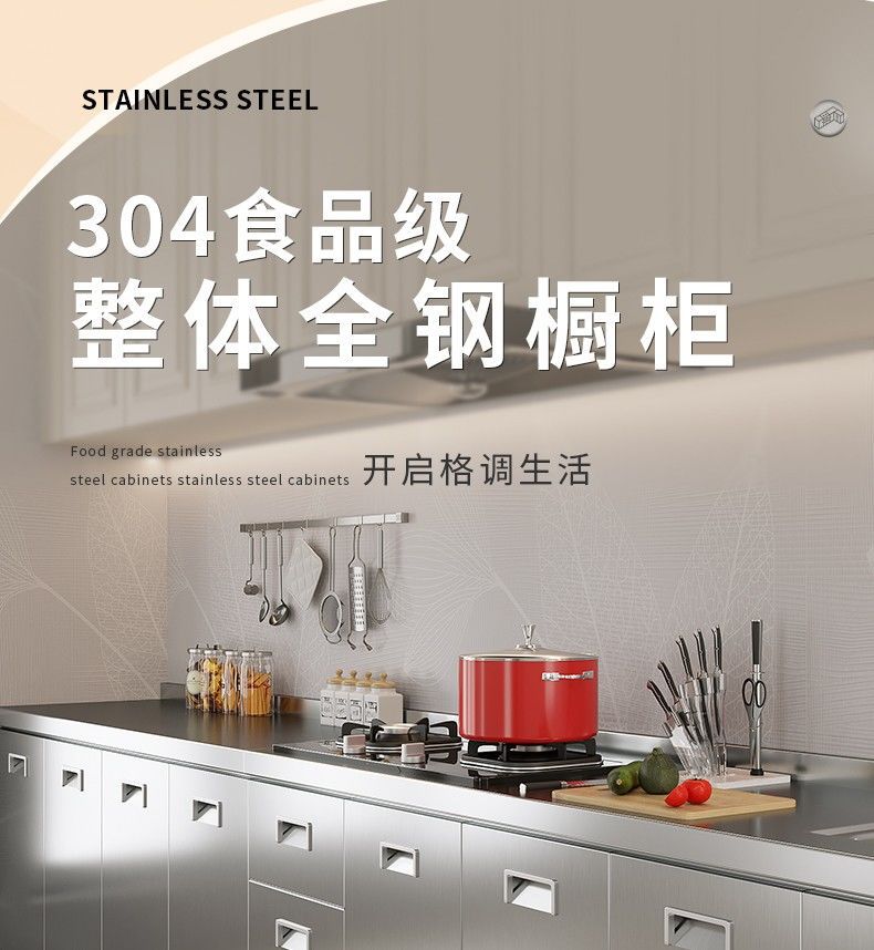 304 일체형 스테인레스 스틸 주방 캐비닛, 매우 두꺼운 간이 찬장 및 스토브, 일체형 농촌 보관함, 소규모 가구 L^