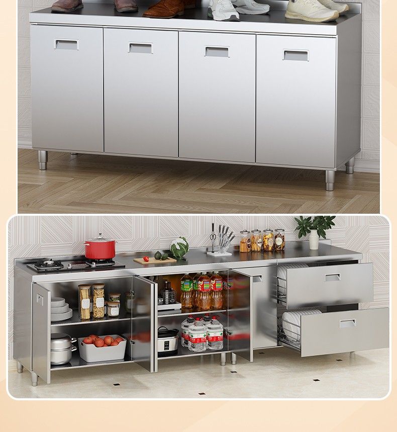 304 일체형 스테인레스 스틸 주방 캐비닛, 매우 두꺼운 간이 찬장 및 스토브, 일체형 농촌 보관함, 소규모 가구 L^스토어 가기