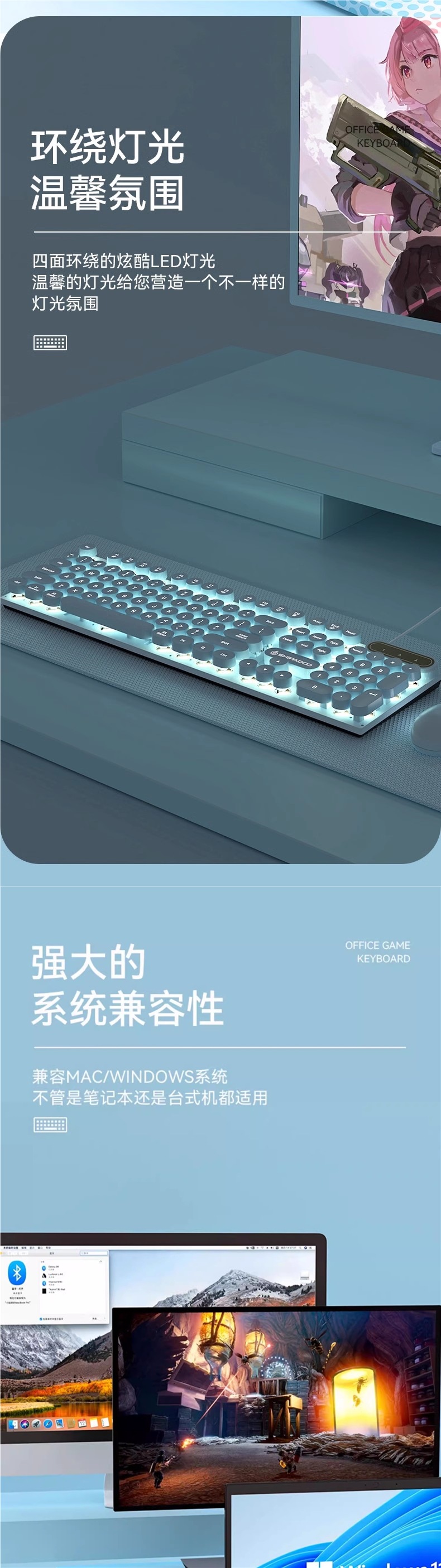• [키보드 및 마우스 세트] Fanxing Ice Blue + 아름다운 흰색 무음 마우스