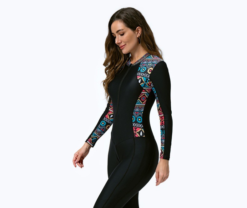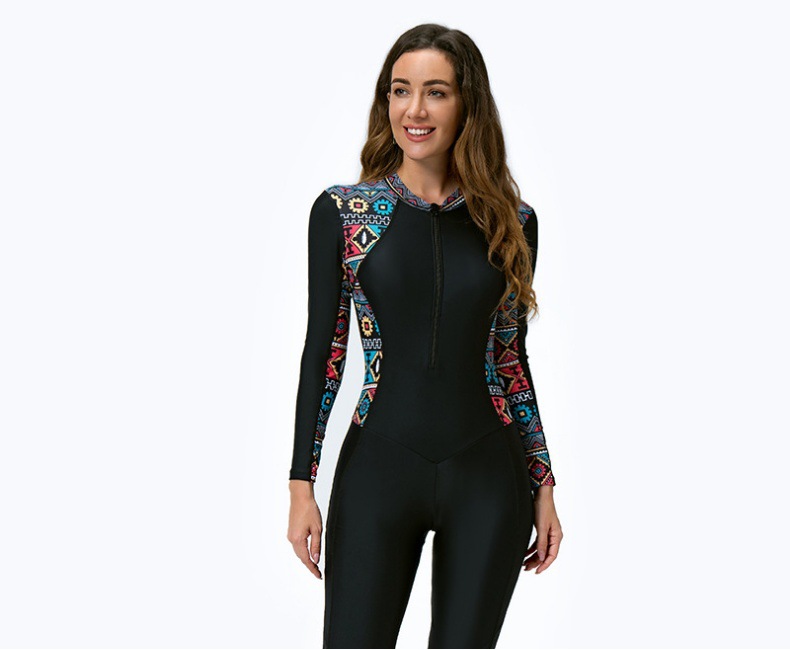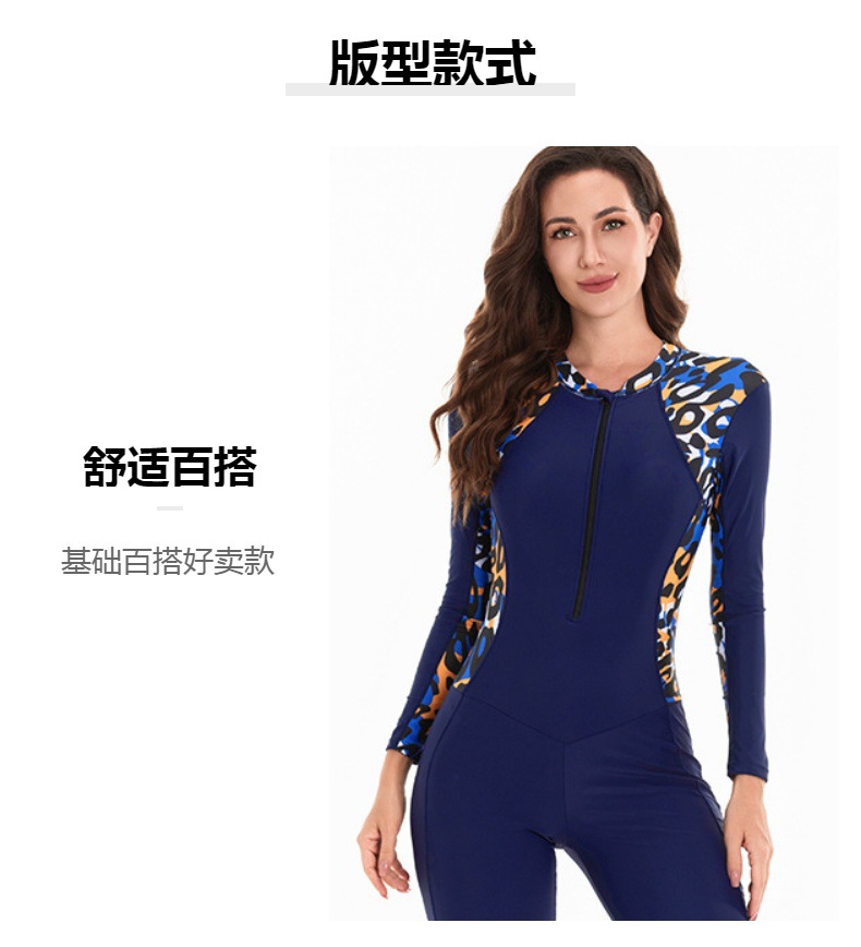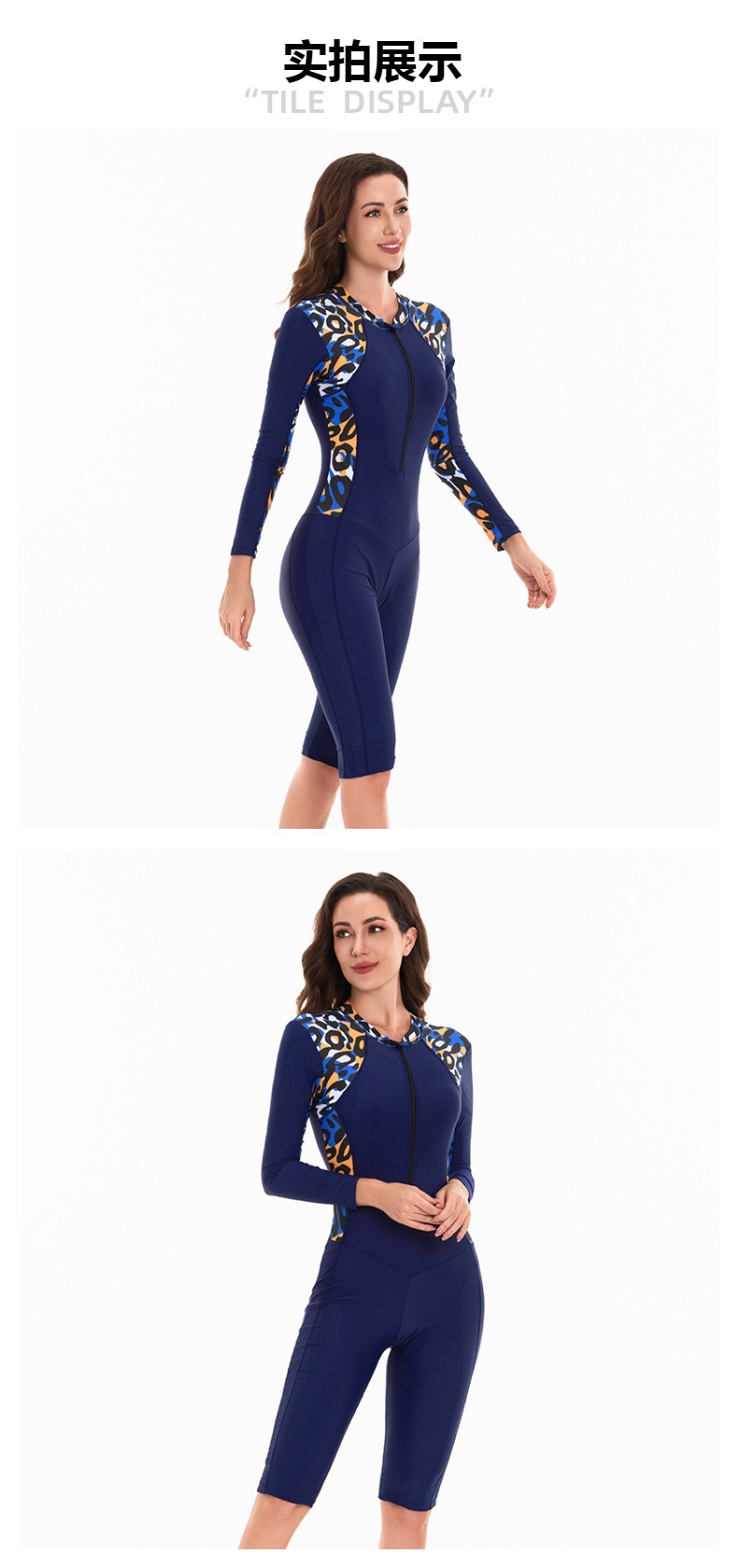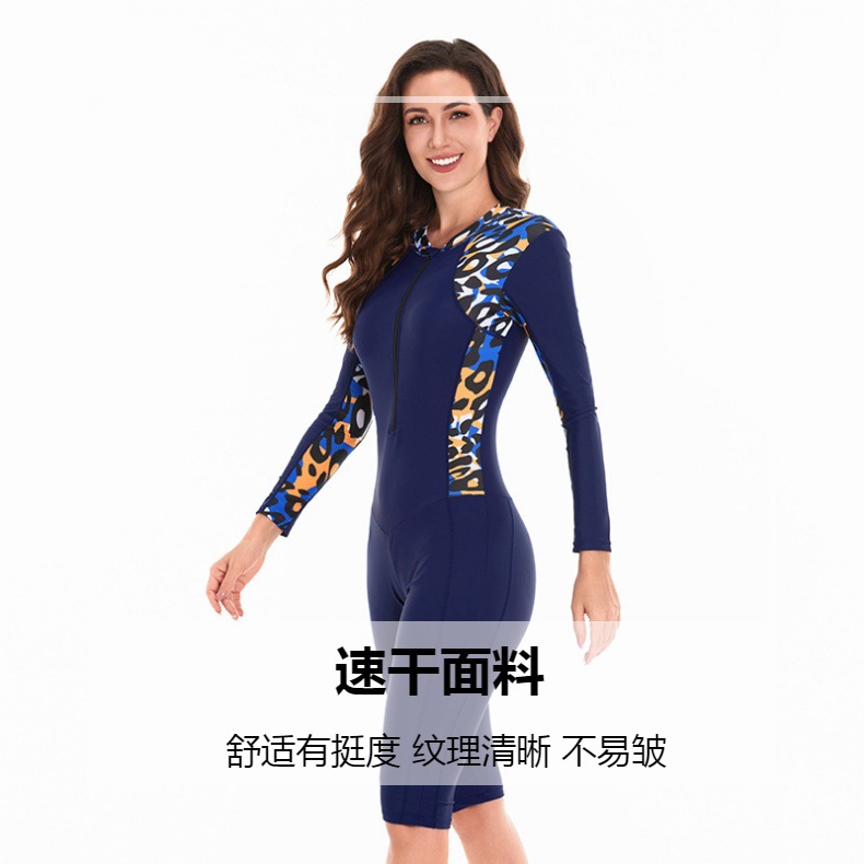 유럽과 미국의 수영복 여성 대외 무역 원피스 긴팔 서핑 슈트 새로운 스타일 복서 바지 잠수복 보수적 인 대형 수영복
