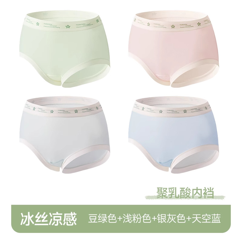 Langsha 아이스 실크 속옷 여성 여름 얇은 원활한 시원한 통기성 중간 허리 폴리락트산 코튼 가랑이 삼각형 여성 속옷스토어 가기