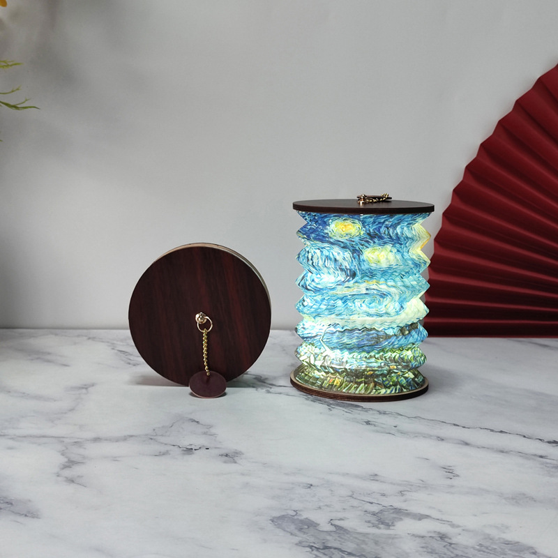 • 휴대용 빨간색 호두나무 커버 - 반 고흐의 별이 빛나는 밤