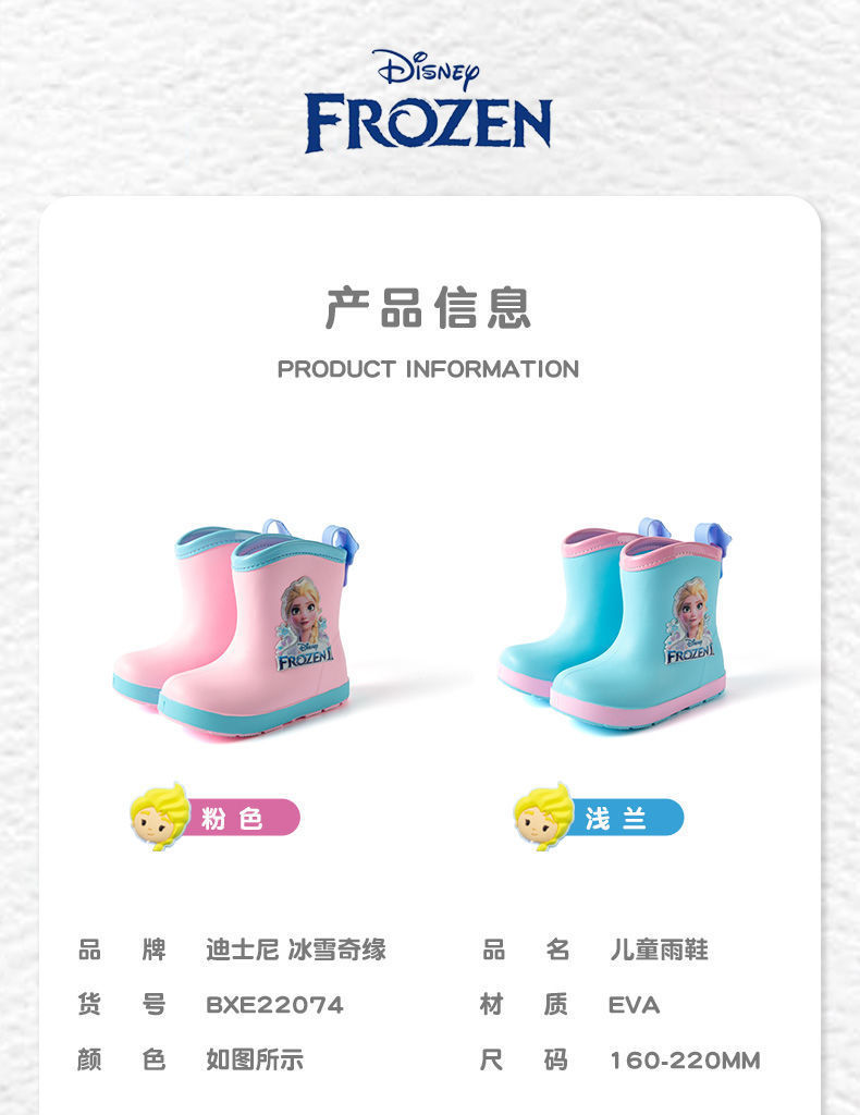 클리어런스 디즈니 어린이 장화 공주 아이샤 비 슬립 안티 드롭 착용 방지 장화 라이트 비 부츠 베이비 워터 슈즈