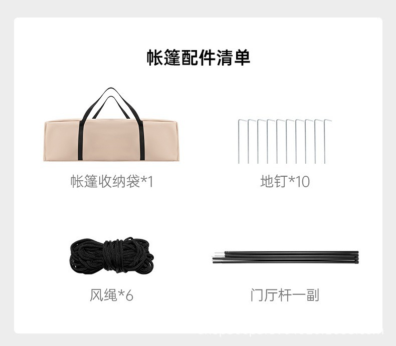 配件: 手动充气泵+门厅杆铁管1付+风绳地钉1包