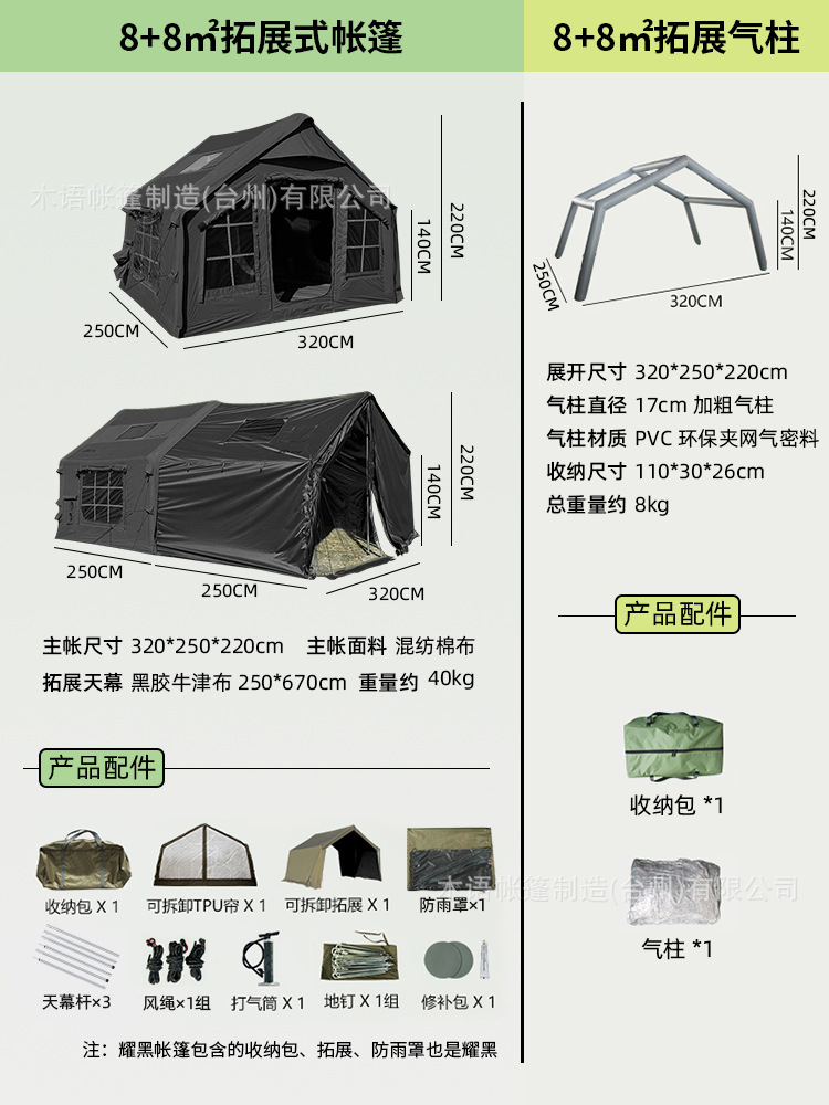 • (메인텐트 + 확장 + 레인커버 + TPU 커튼 + 3개 + 확장 공기기둥) 블랙 프로