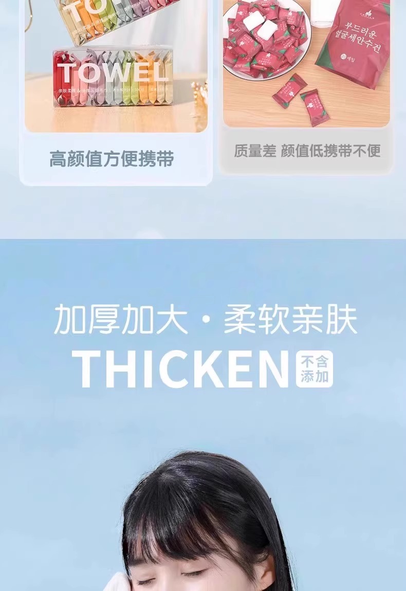 새로운 도파민 색상 일회용 휴대용 압축 수건 여행 별도의 포장 박스 컬러 페이스 타월스토어 가기