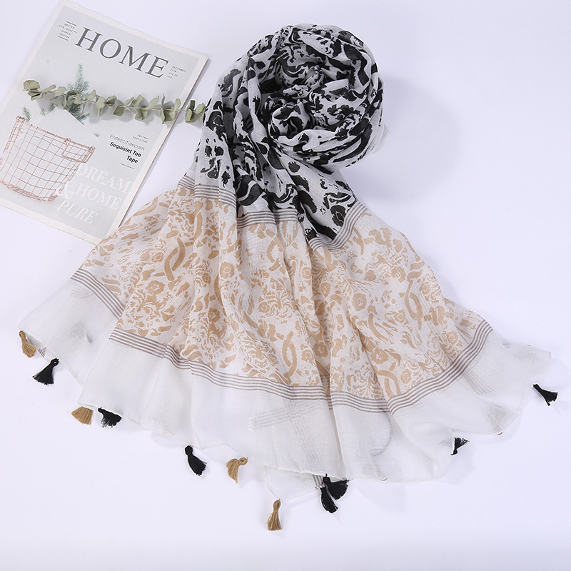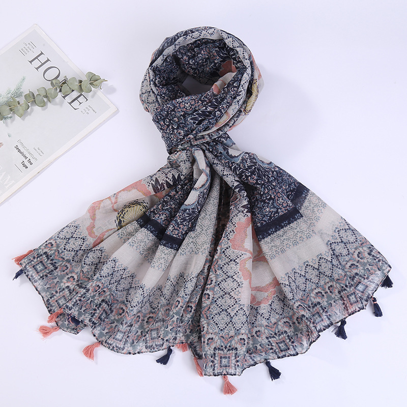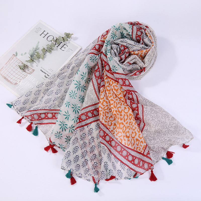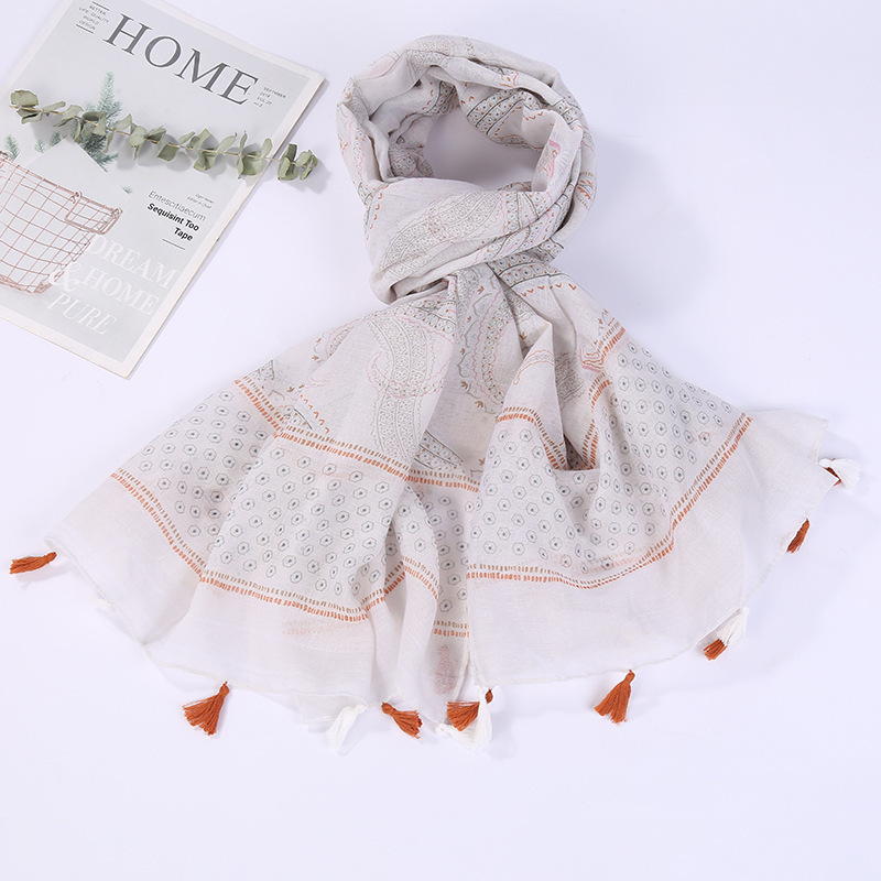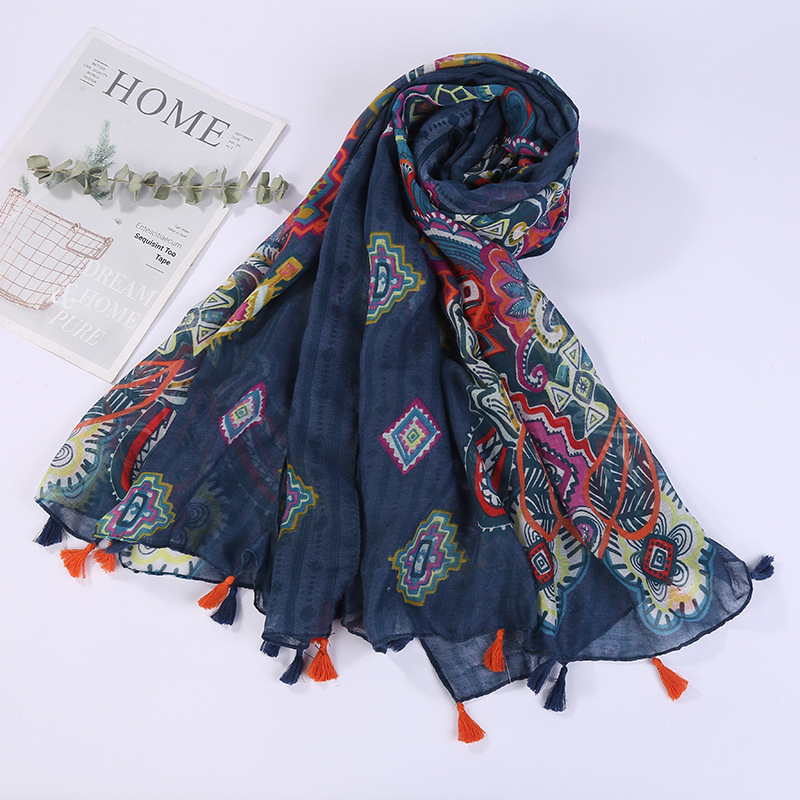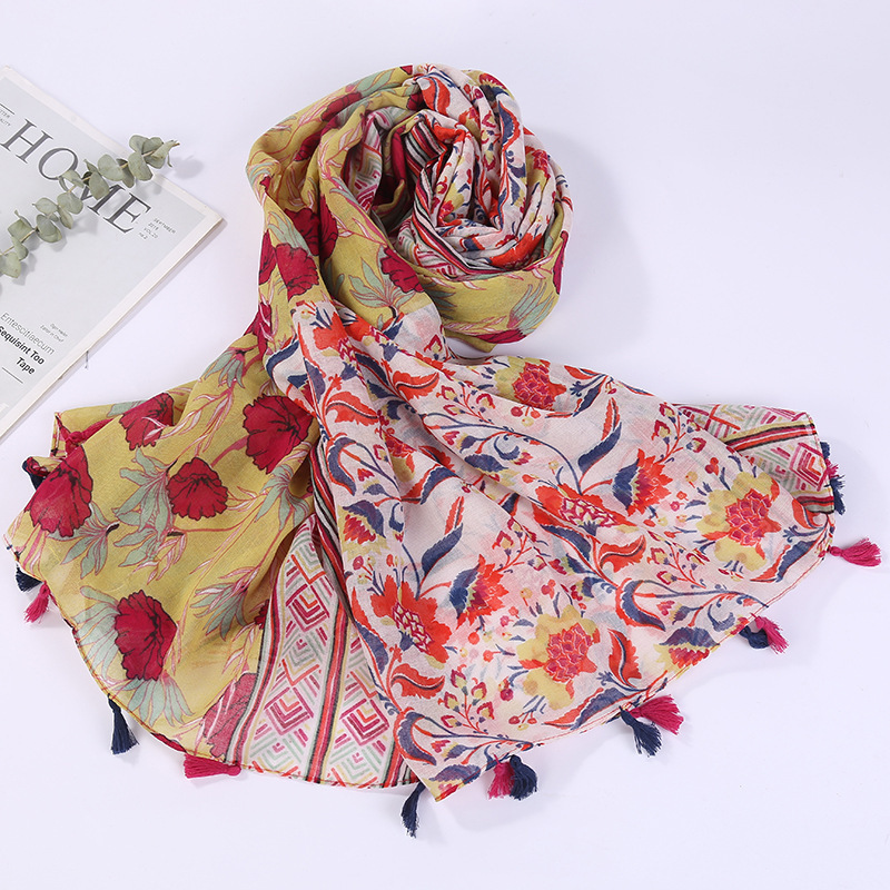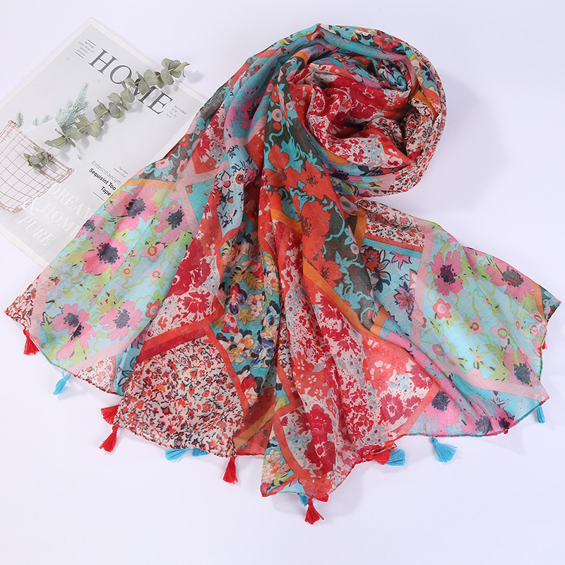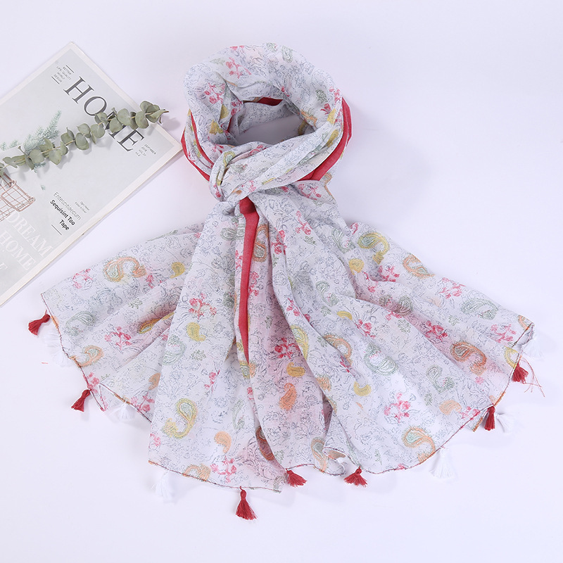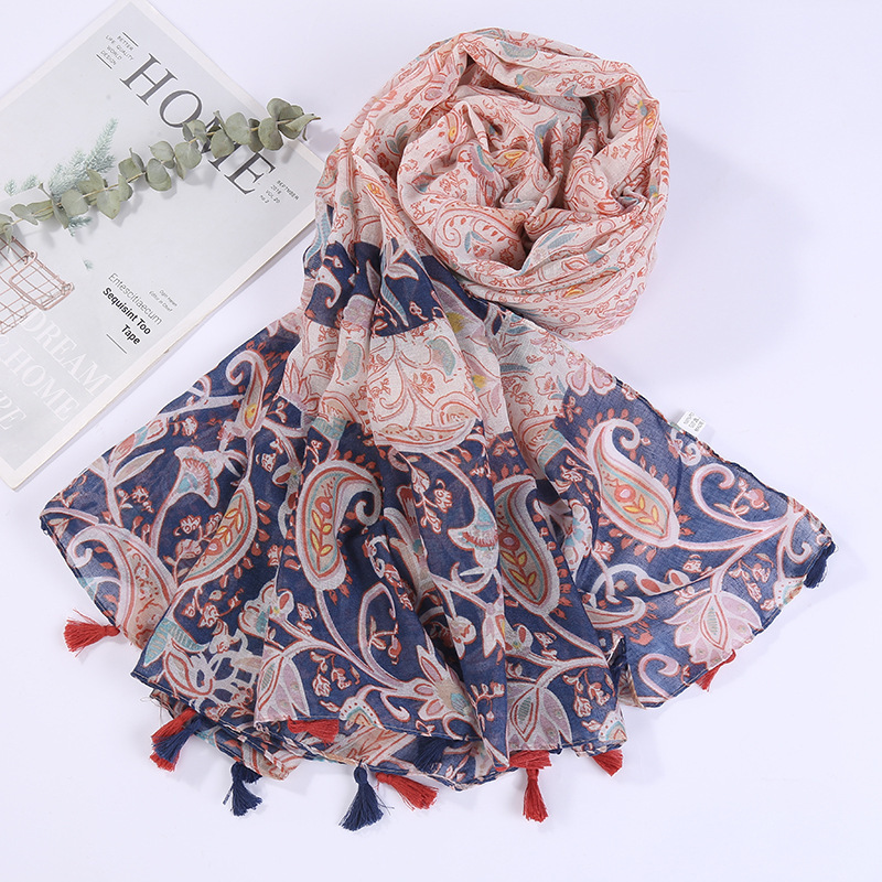 스카프 여성 대외 무역 국경 간 수출 얇은 인쇄 실크 스카프 해변 태양 보호 비치 타월 바리샤 태슬 숄스토어 가기