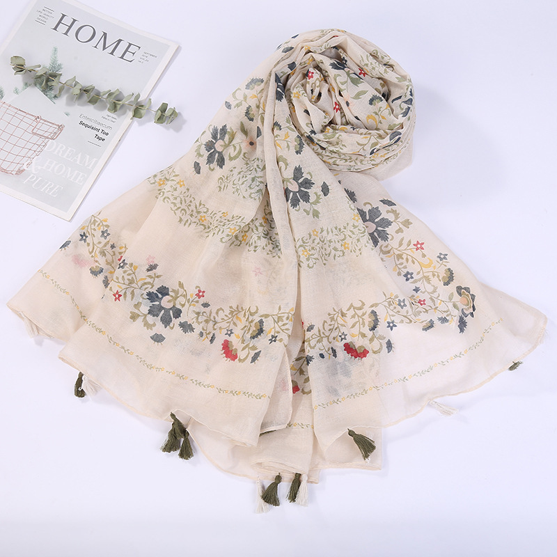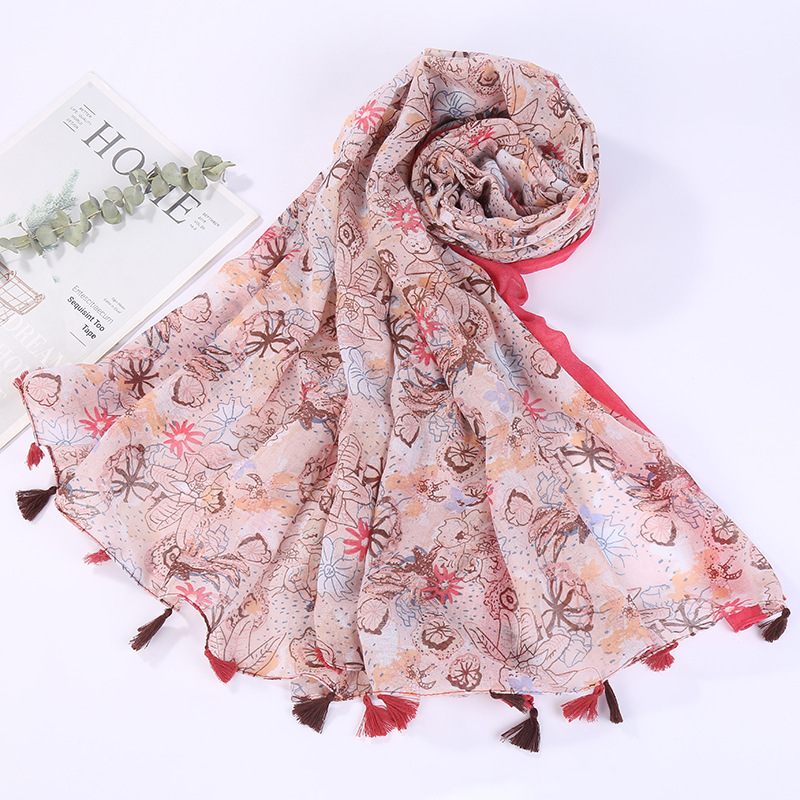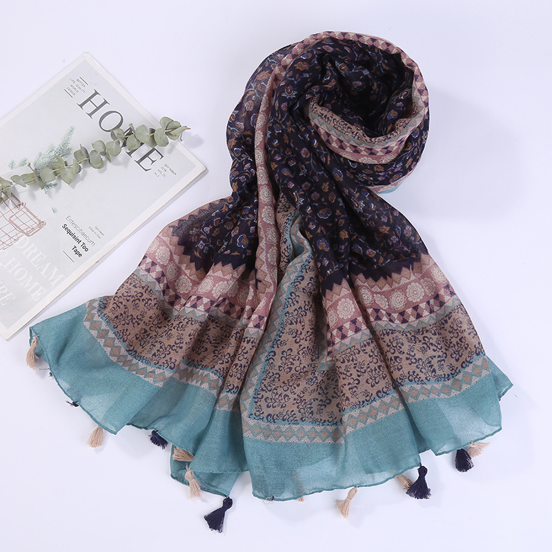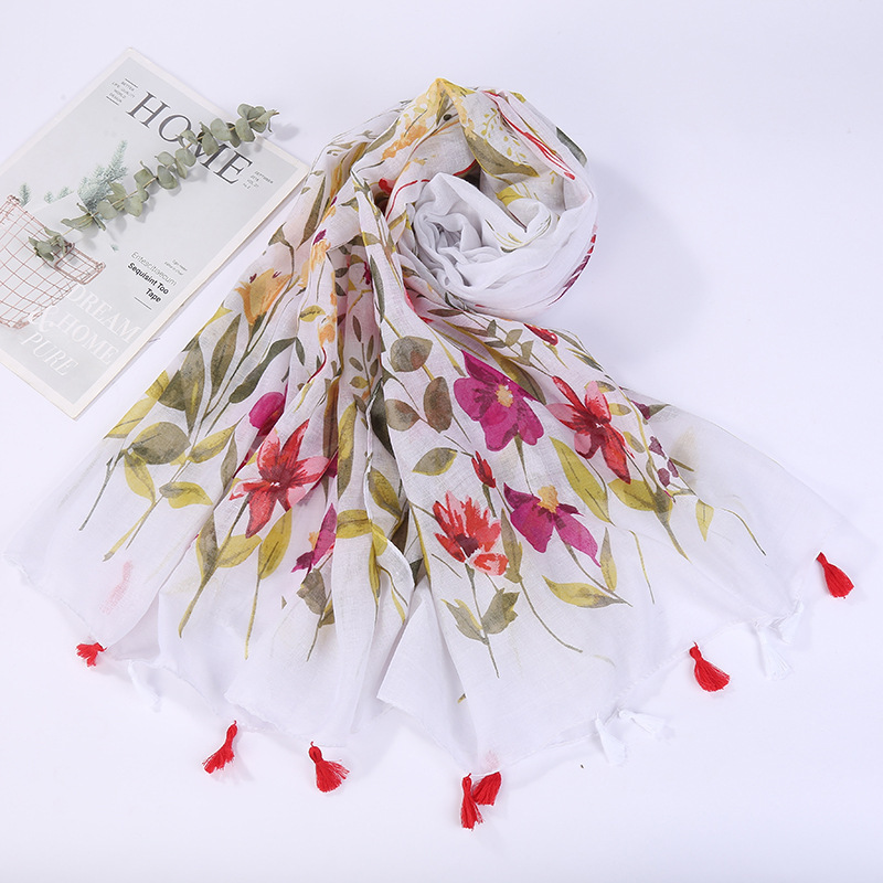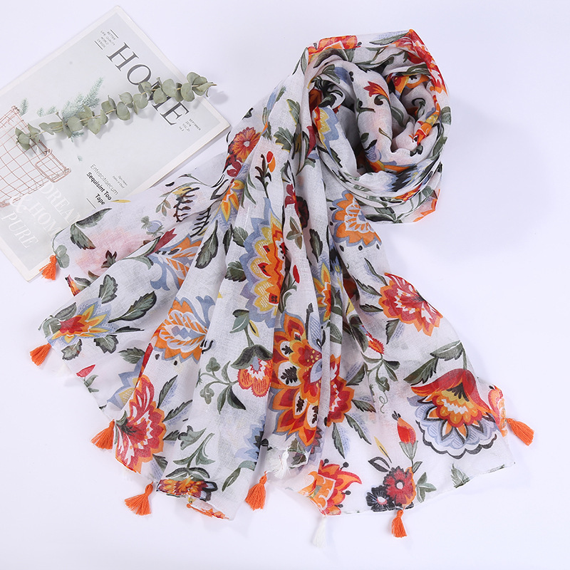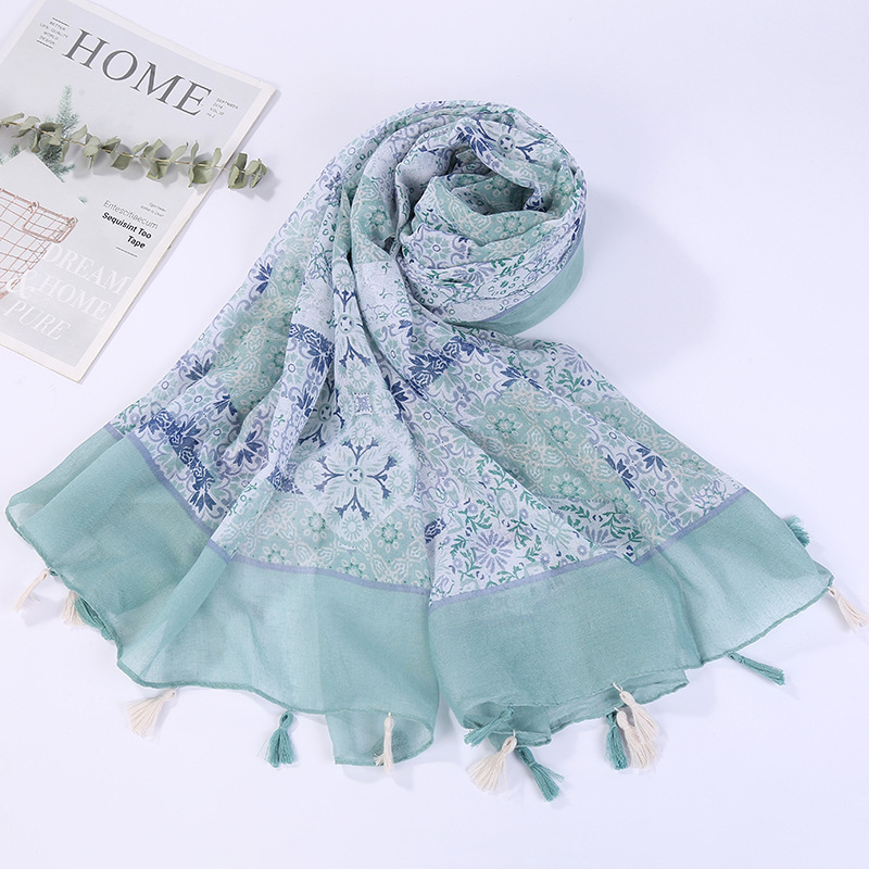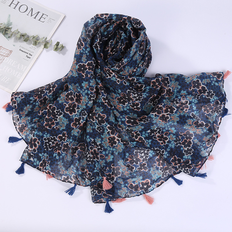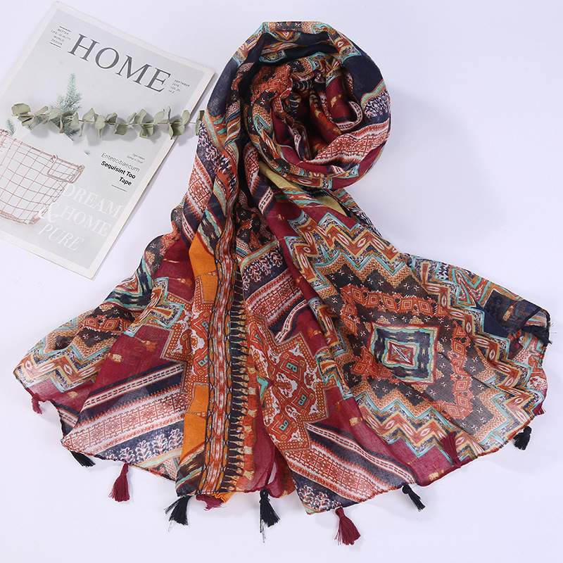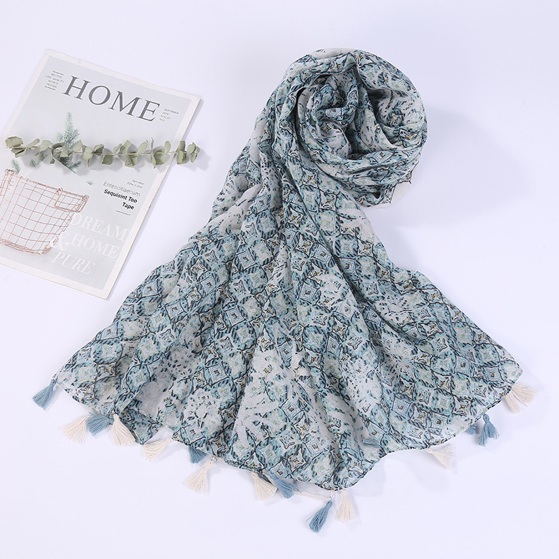 스카프 여성 대외 무역 국경 간 수출 얇은 인쇄 실크 스카프 해변 태양 보호 비치 타월 바리샤 태슬 숄스토어 가기