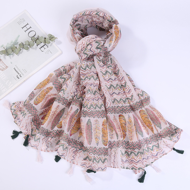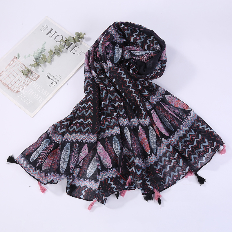 스카프 여성 대외 무역 국경 간 수출 얇은 인쇄 실크 스카프 해변 태양 보호 비치 타월 바리샤 태슬 숄