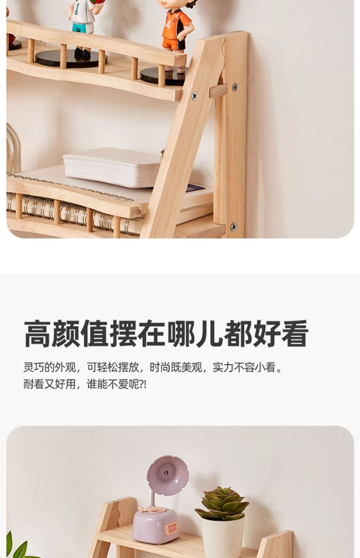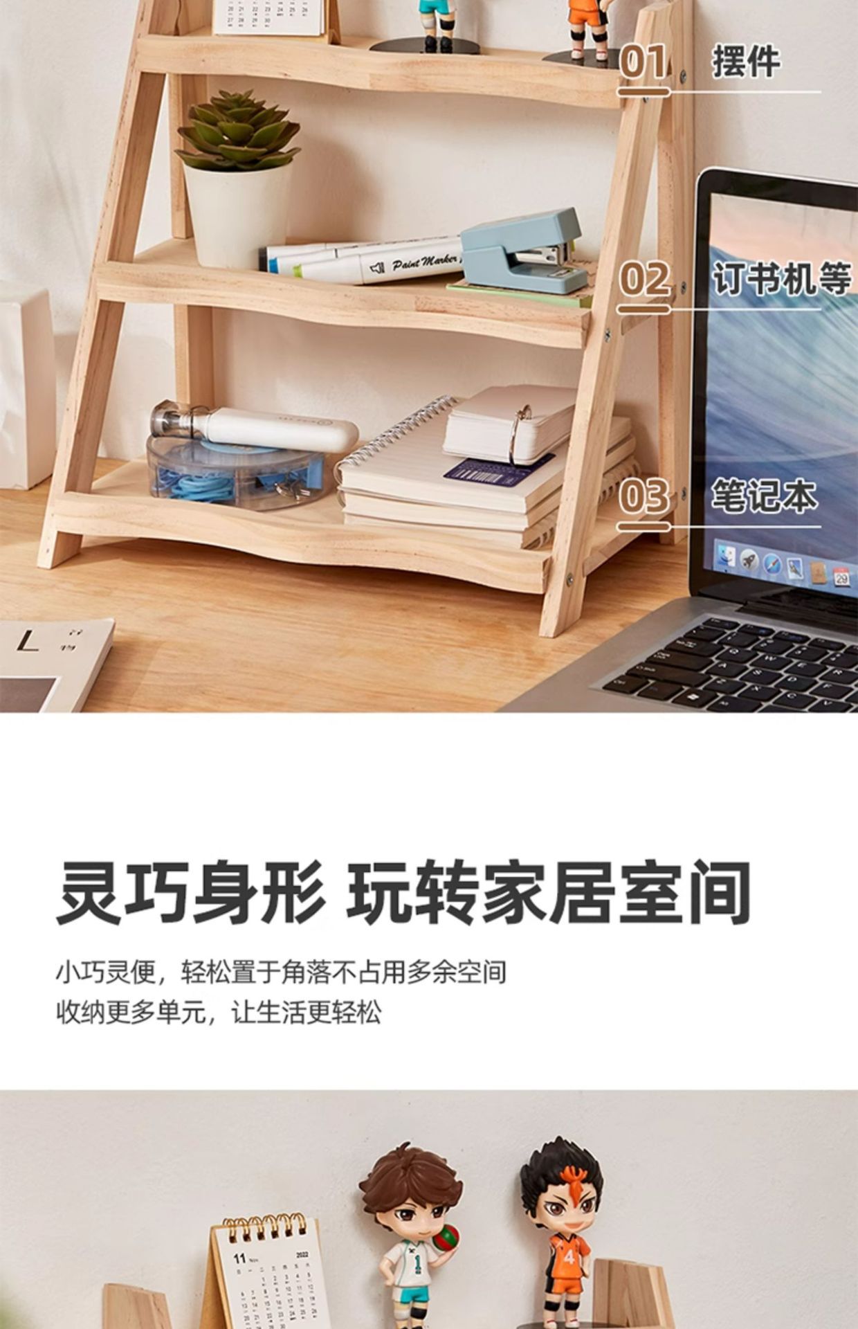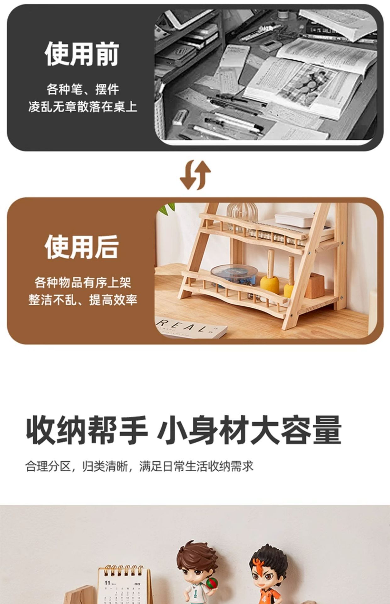 설치가 필요 없는 단단한 나무 다층 데스크탑 스토리지 랙 기숙사 침실 사무실 책상 사다리 스토리지 랙 정리 랙