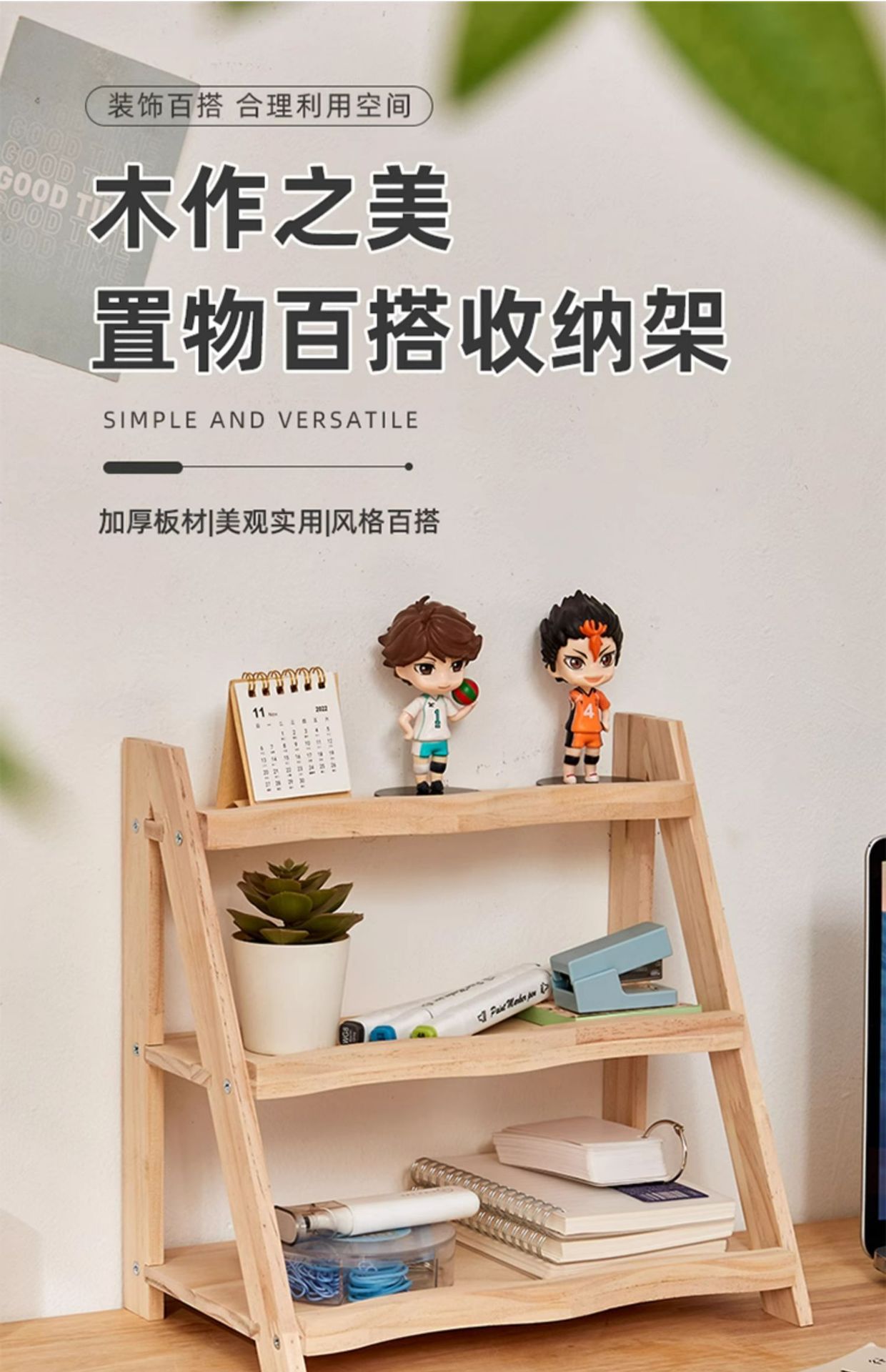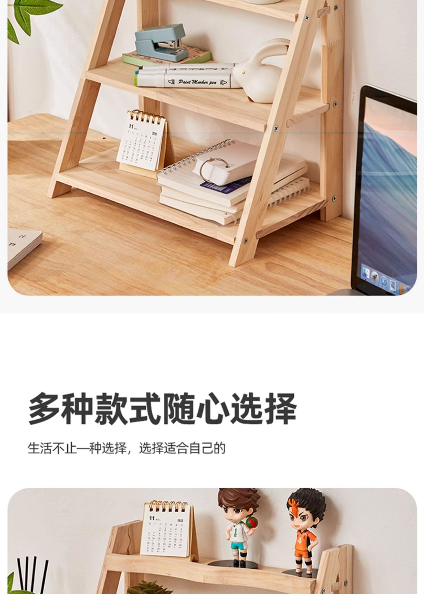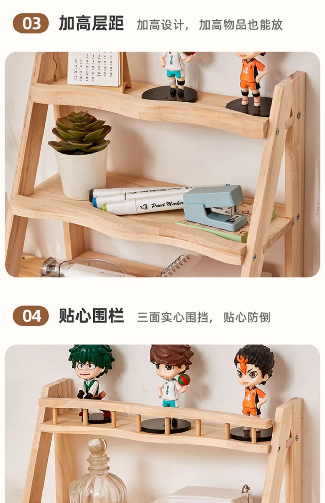 설치가 필요 없는 단단한 나무 다층 데스크탑 스토리지 랙 기숙사 침실 사무실 책상 사다리 스토리지 랙 정리 랙