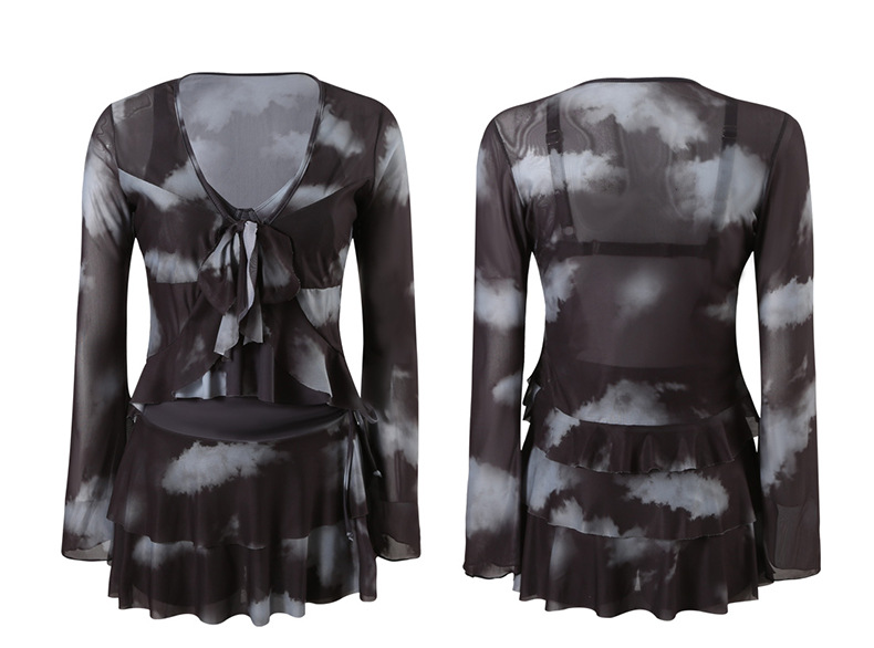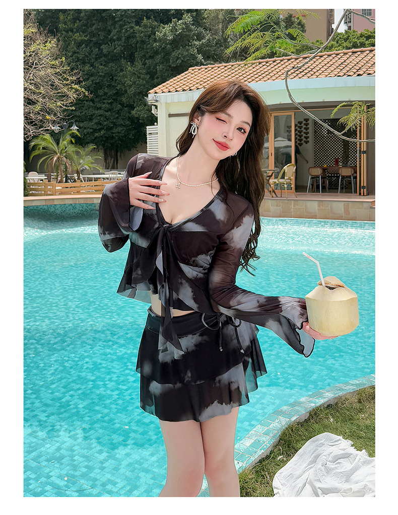 수영복 소녀 플러스 사이즈 뚱뚱한 mm 100kg 섹시한 블라우스 스플릿 스커트 4 피스 세트는 배를 덮고 슬리밍 온천에 다녀옵니다스토어 가기