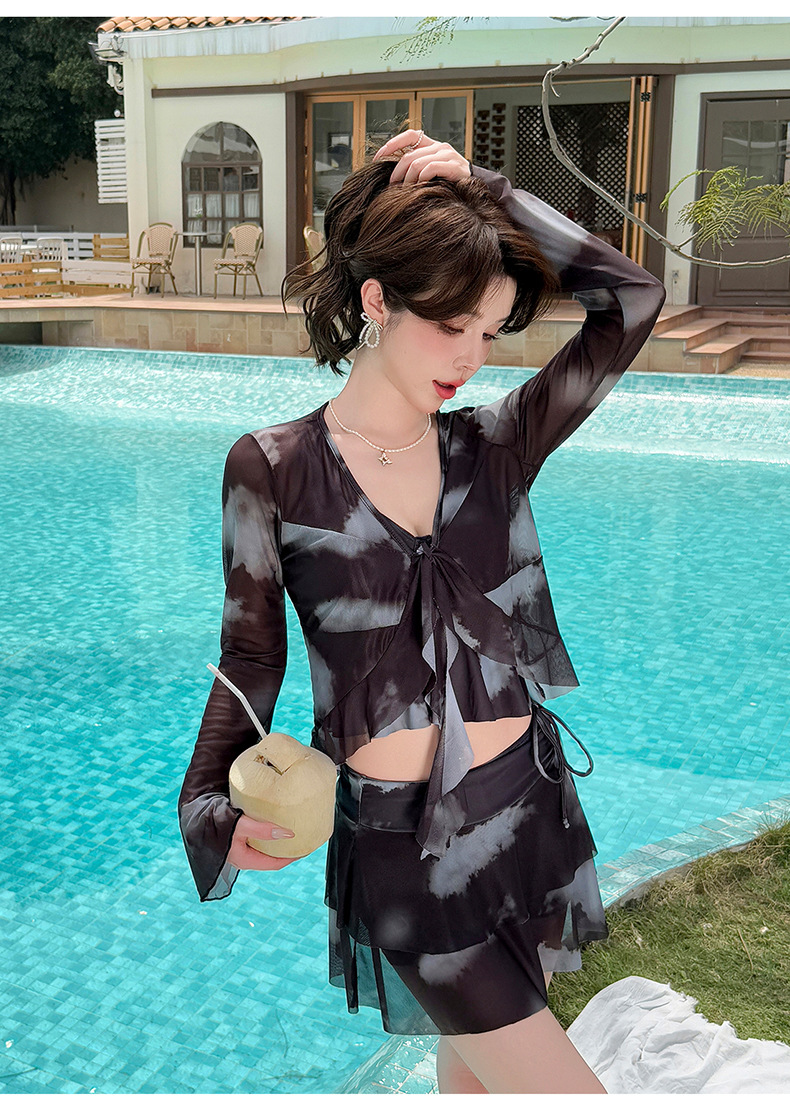 수영복 소녀 플러스 사이즈 뚱뚱한 mm 100kg 섹시한 블라우스 스플릿 스커트 4 피스 세트는 배를 덮고 슬리밍 온천에 다녀옵니다