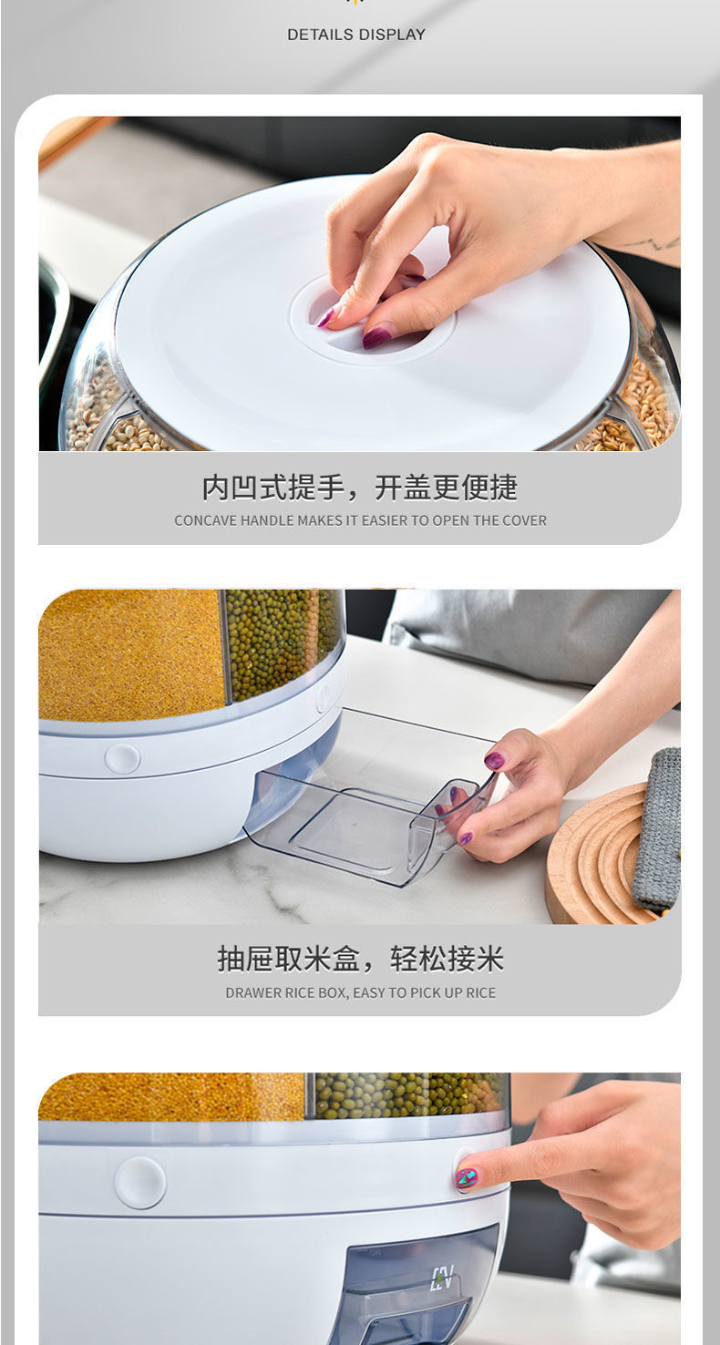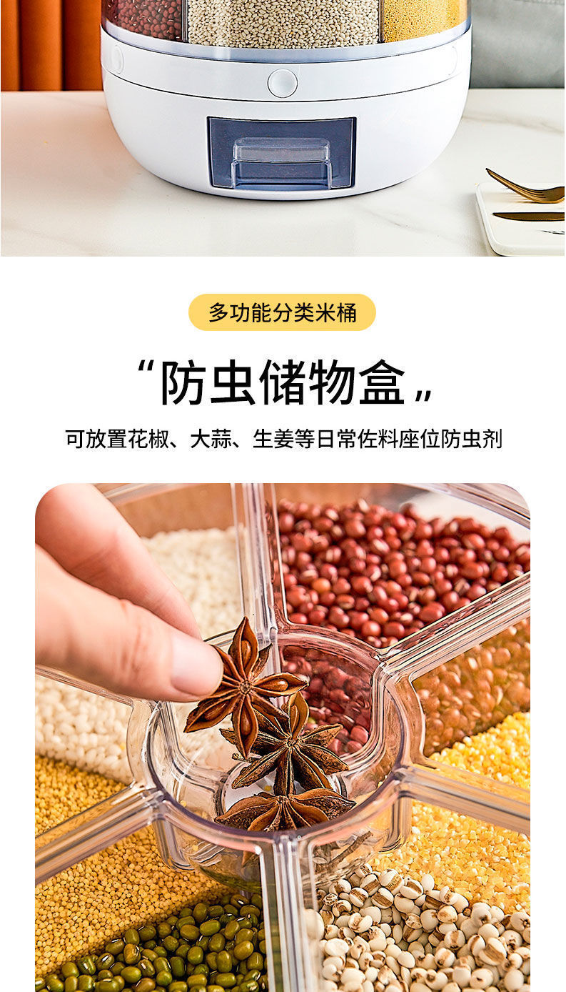 인기 있는 회전식 분리형 곡물 밀봉 용기, 방충 및 방습 곡물 보관 상자, 가정용 투명 쌀 보관통스토어 가기