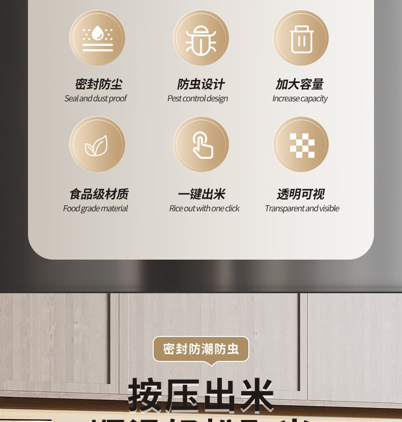 2025 새로운 쌀통 식품 등급 가정용 밀봉 쌀통 쌀 저장 용기 쌀 상자 방충 및 방습 쌀 저장