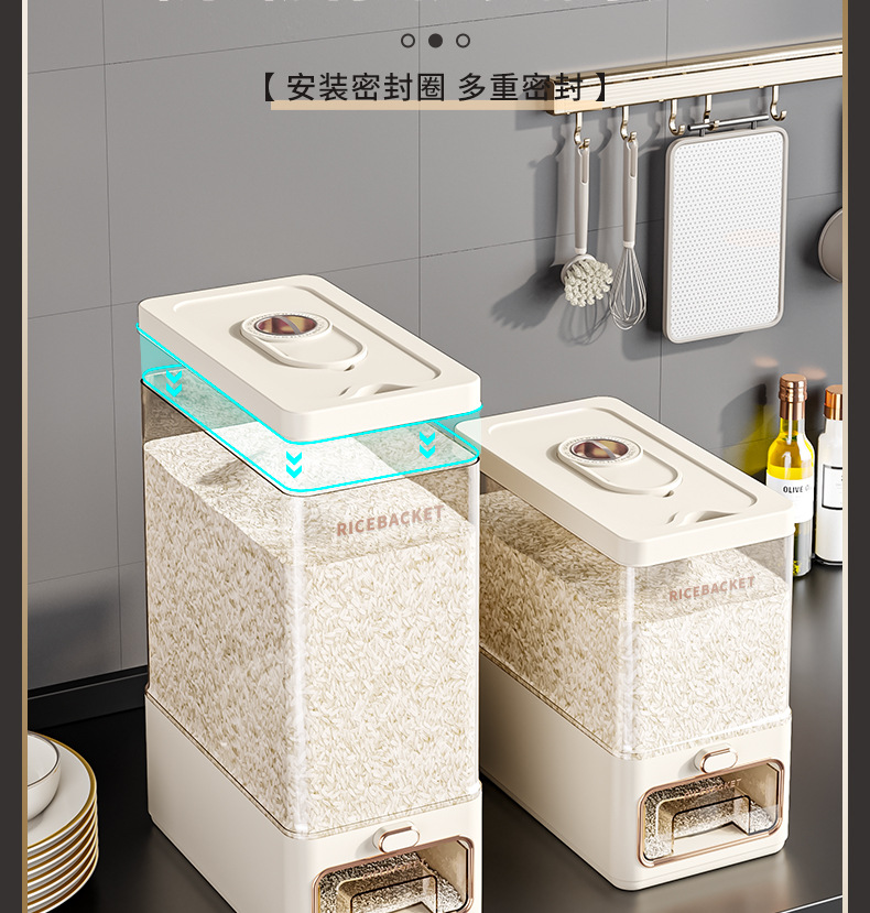 2025 새로운 쌀통 식품 등급 가정용 밀봉 쌀통 쌀 저장 용기 쌀 상자 방충 및 방습 쌀 저장스토어 가기