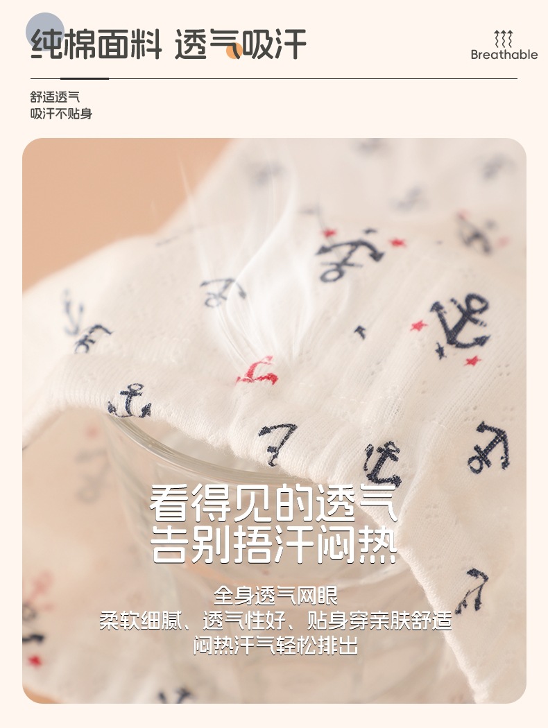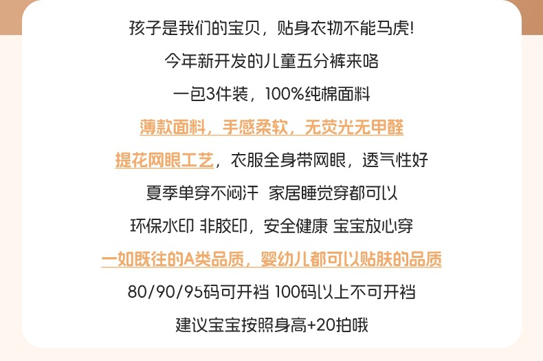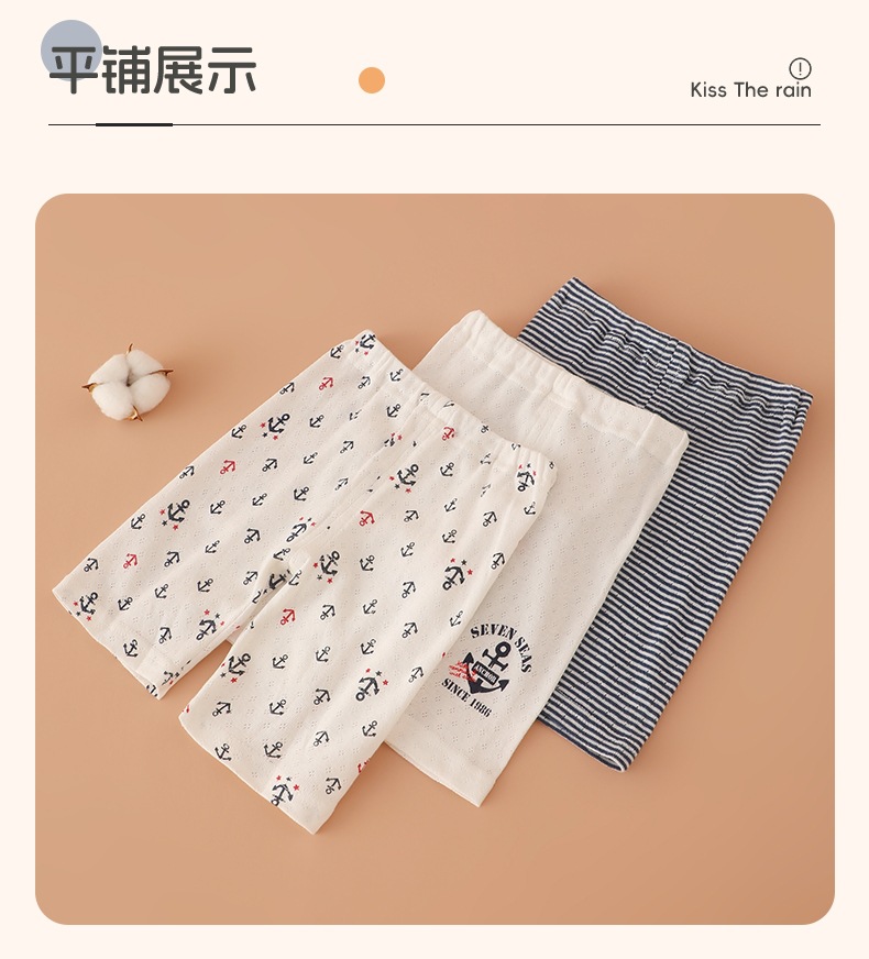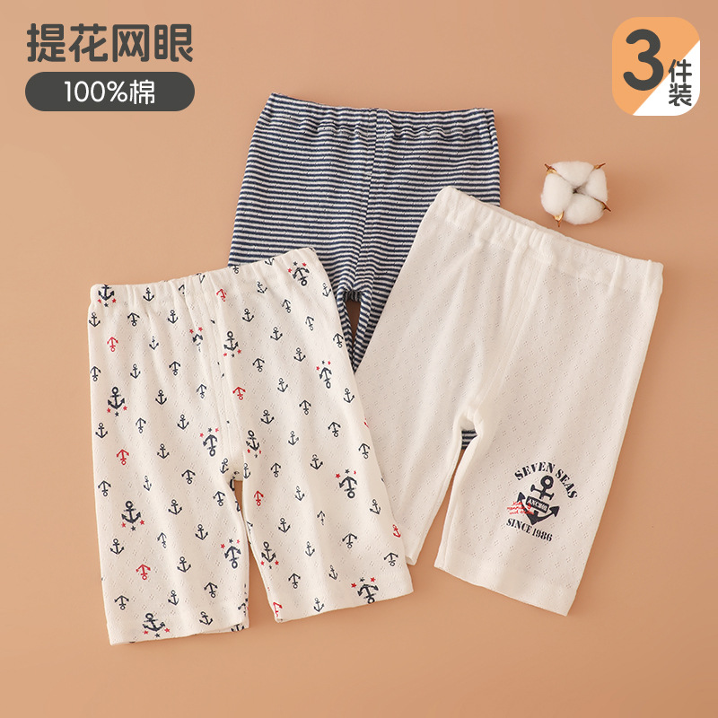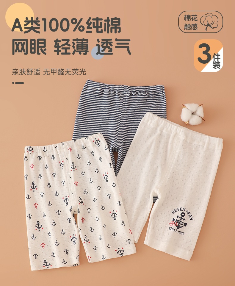 일본 3피스 아동용 반바지 메쉬 남아용 5부 바지 홈 파자마 얇은 아기 에어컨 바지 순면 카테고리 A