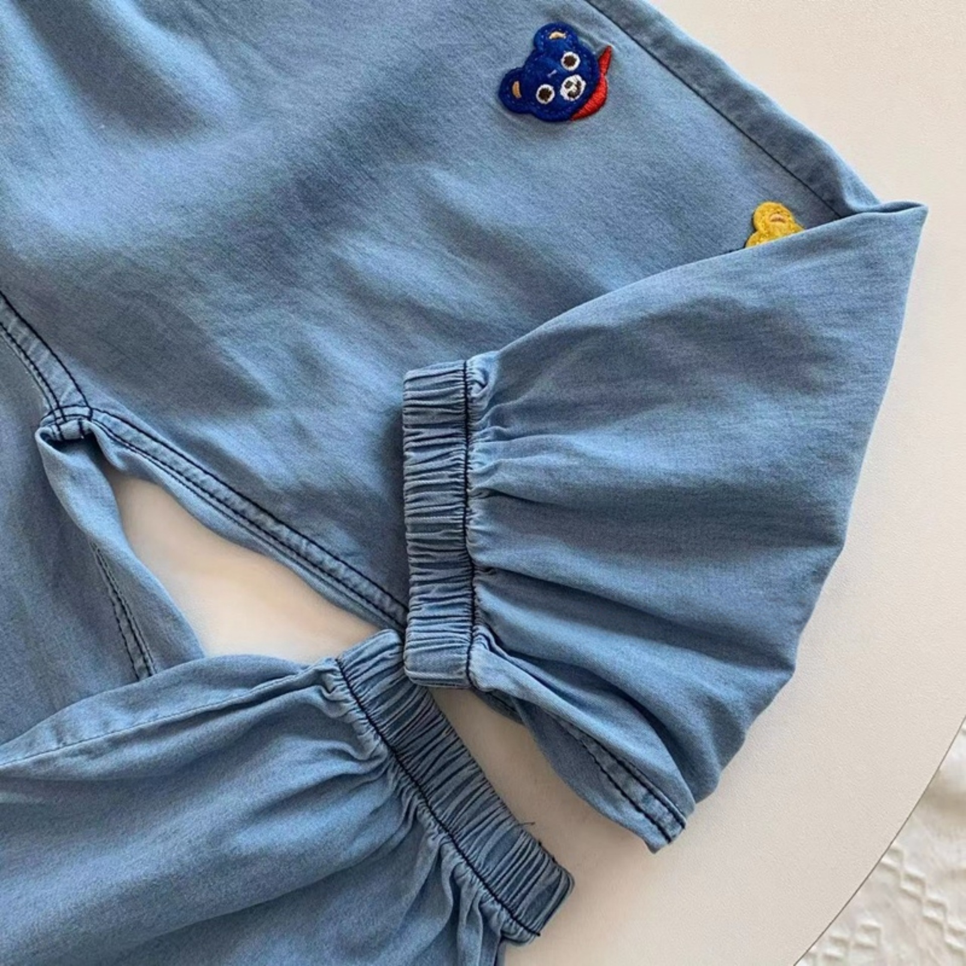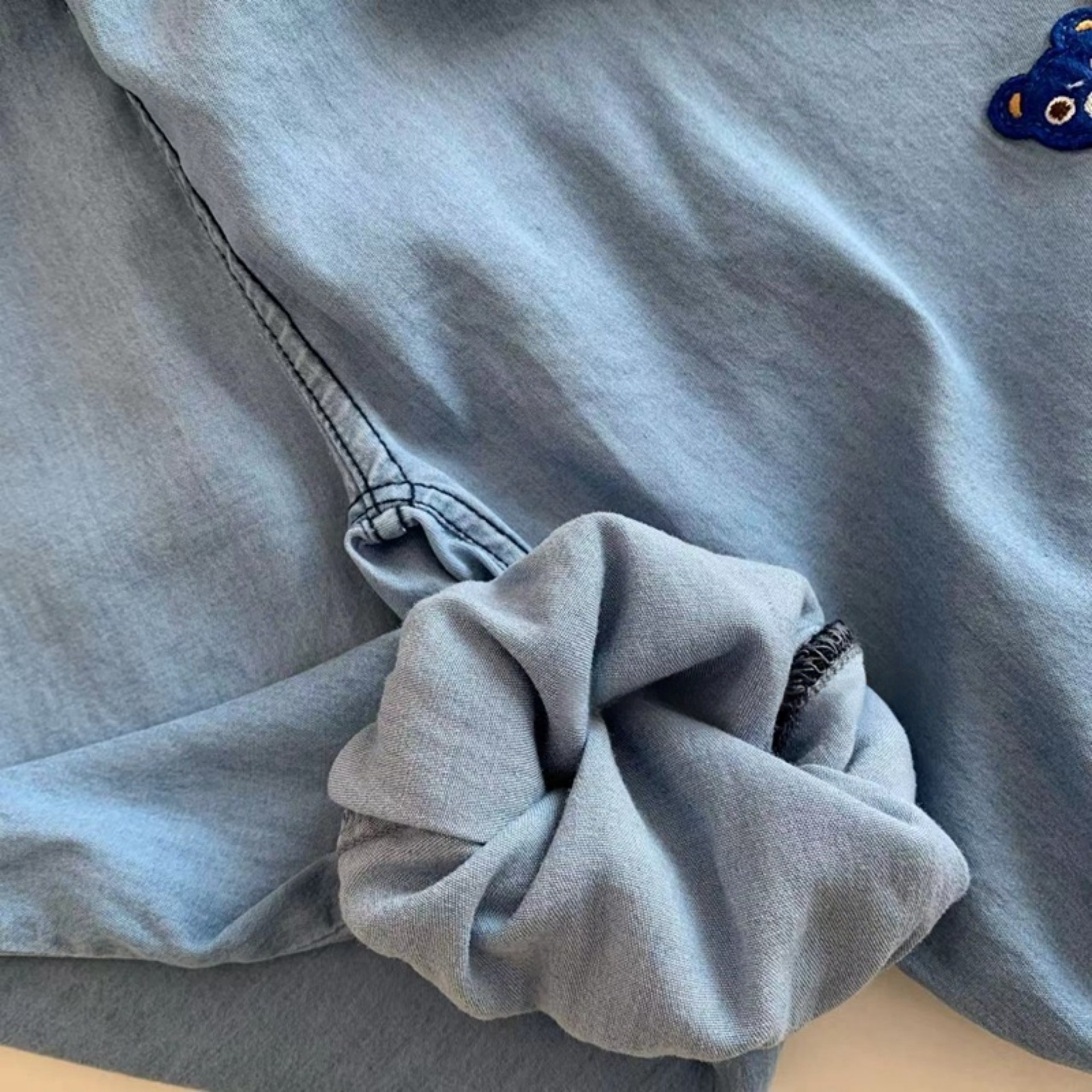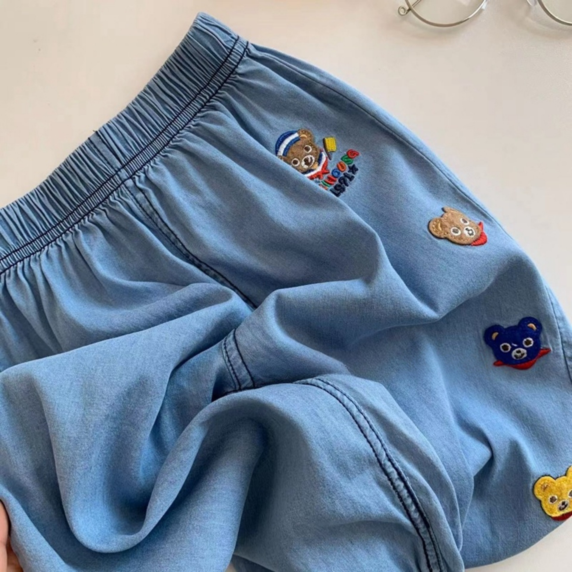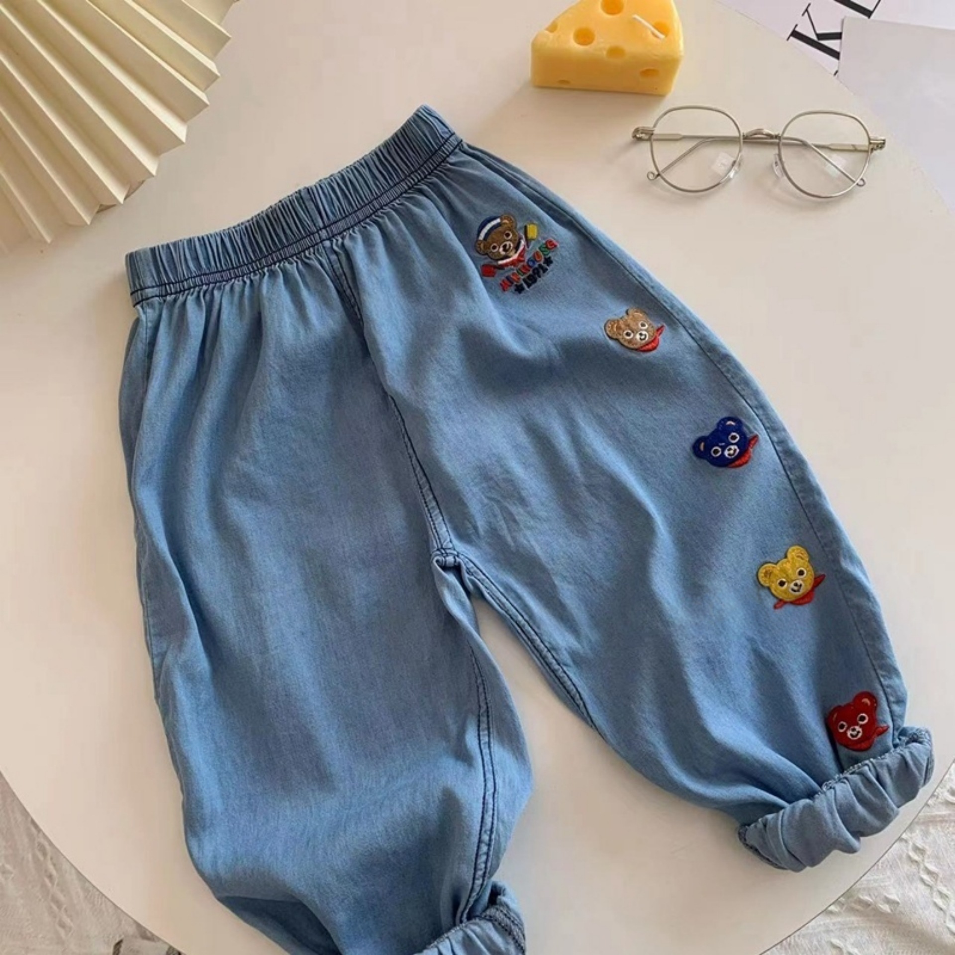 작은 소금 레몬 텐셀 코튼 바지, 여름 신상 아동용 측면 곰 자수 캐주얼 레깅스, 아기용 루즈한 모기 방지 바지스토어 가기