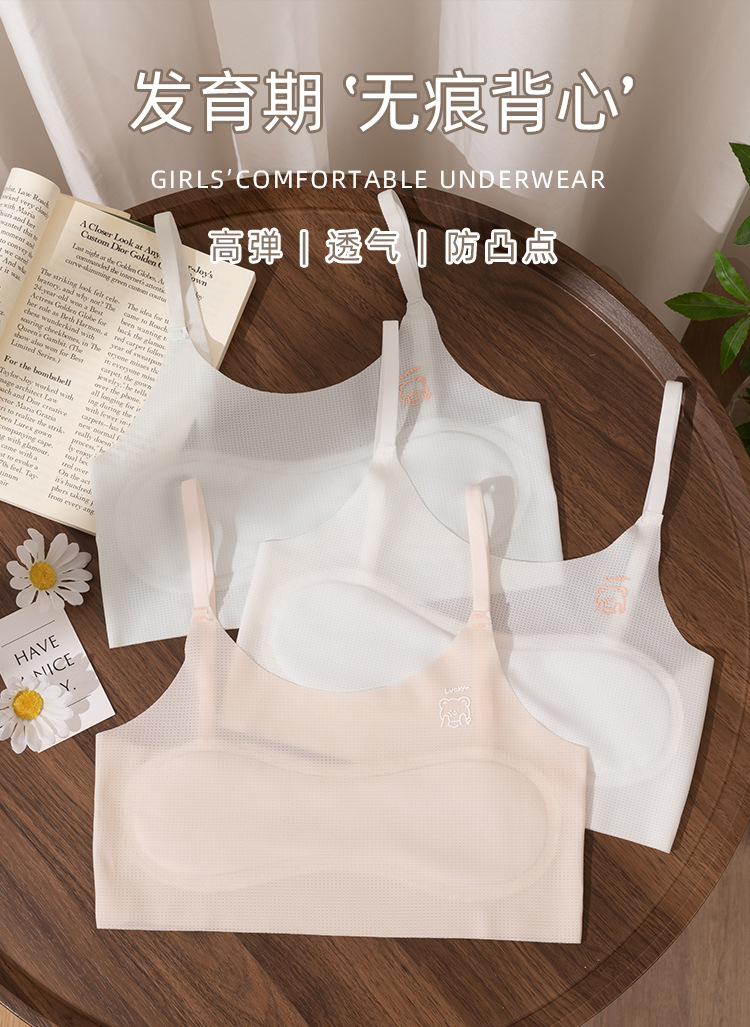 어린이 속옷, 여름용 아이스 실크, 발달기 여아, 초중등학생, 사춘기 소녀, 조끼형 브라, 소녀용 브라