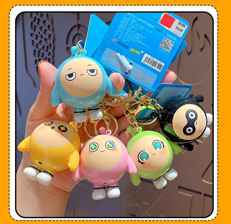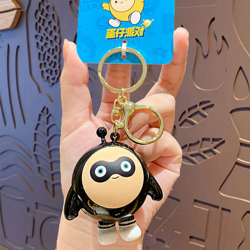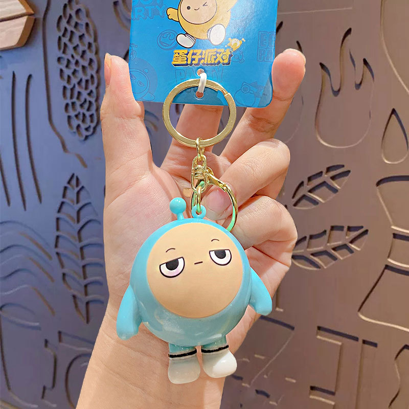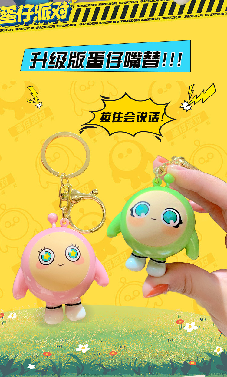 정품 귀여운 계란 파티 키 체인 펜던트 창조적 인 커플 음성 인형 키 체인 가방 매달려 장식품